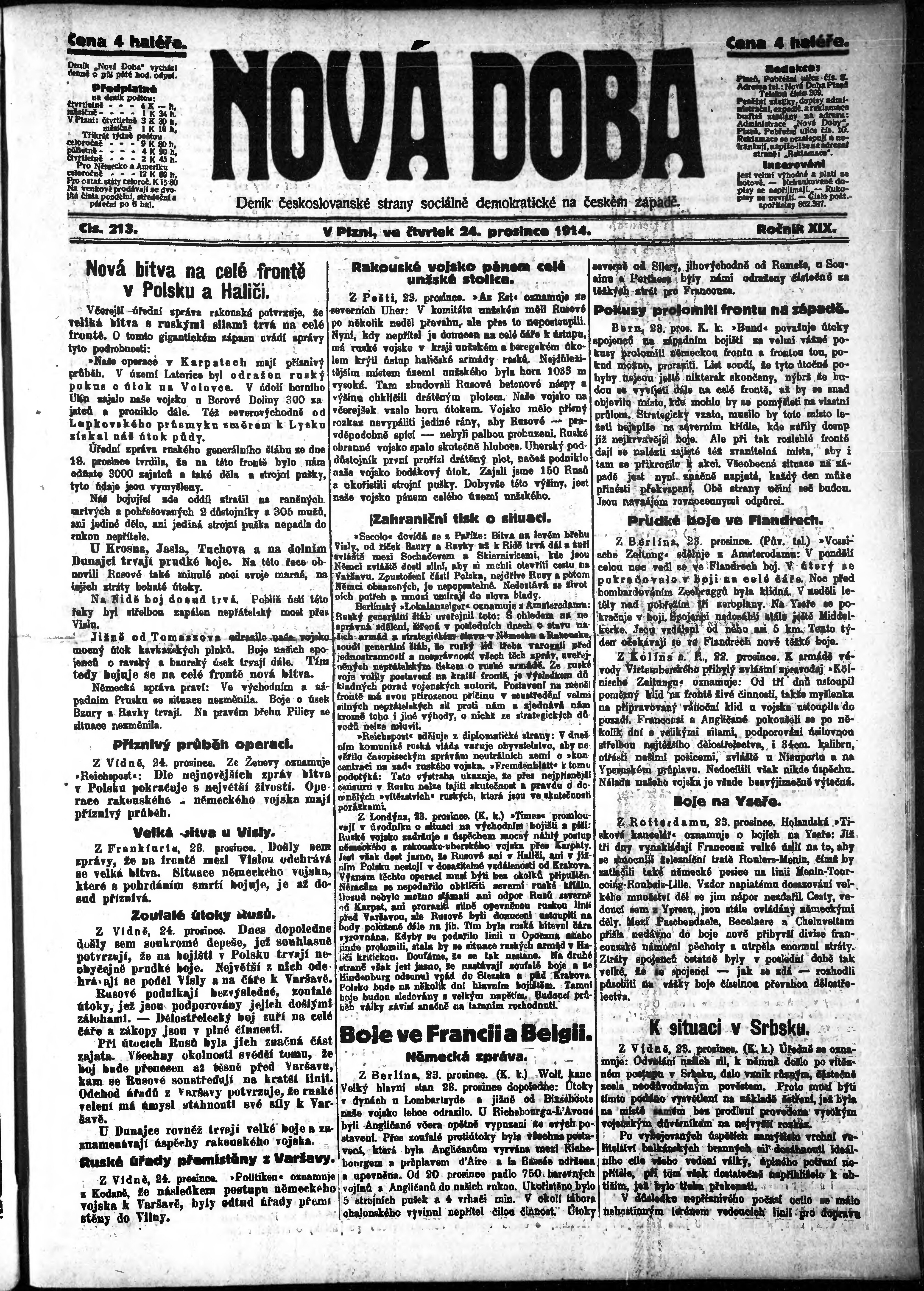 * Datum vydání výtisku: 24.12.1914 Číslo výtisku: 213