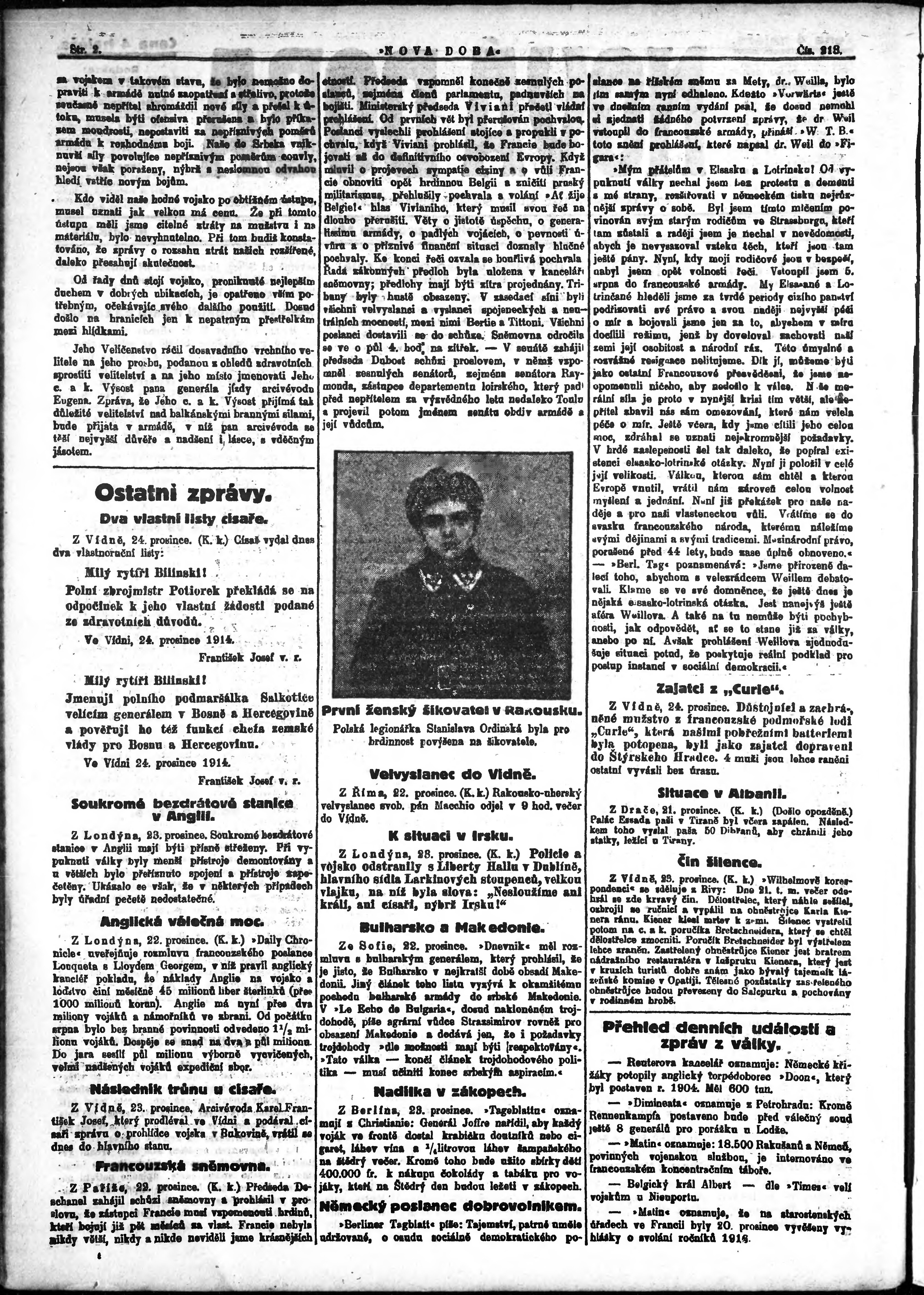 * Datum vydání výtisku: 24.12.1914 Číslo výtisku: 213