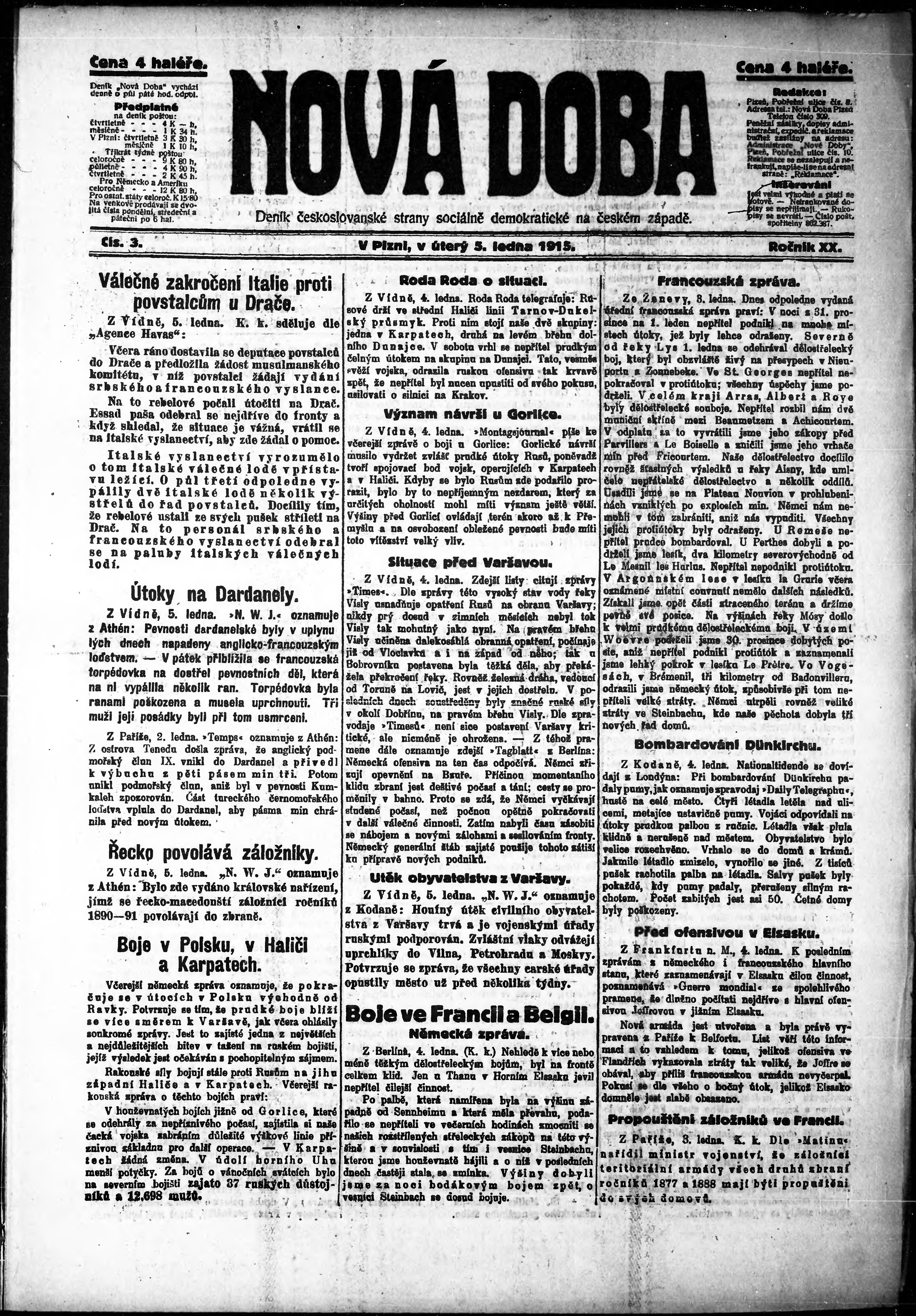 * Datum vydání výtisku: 5.1.1915 Číslo výtisku: 3