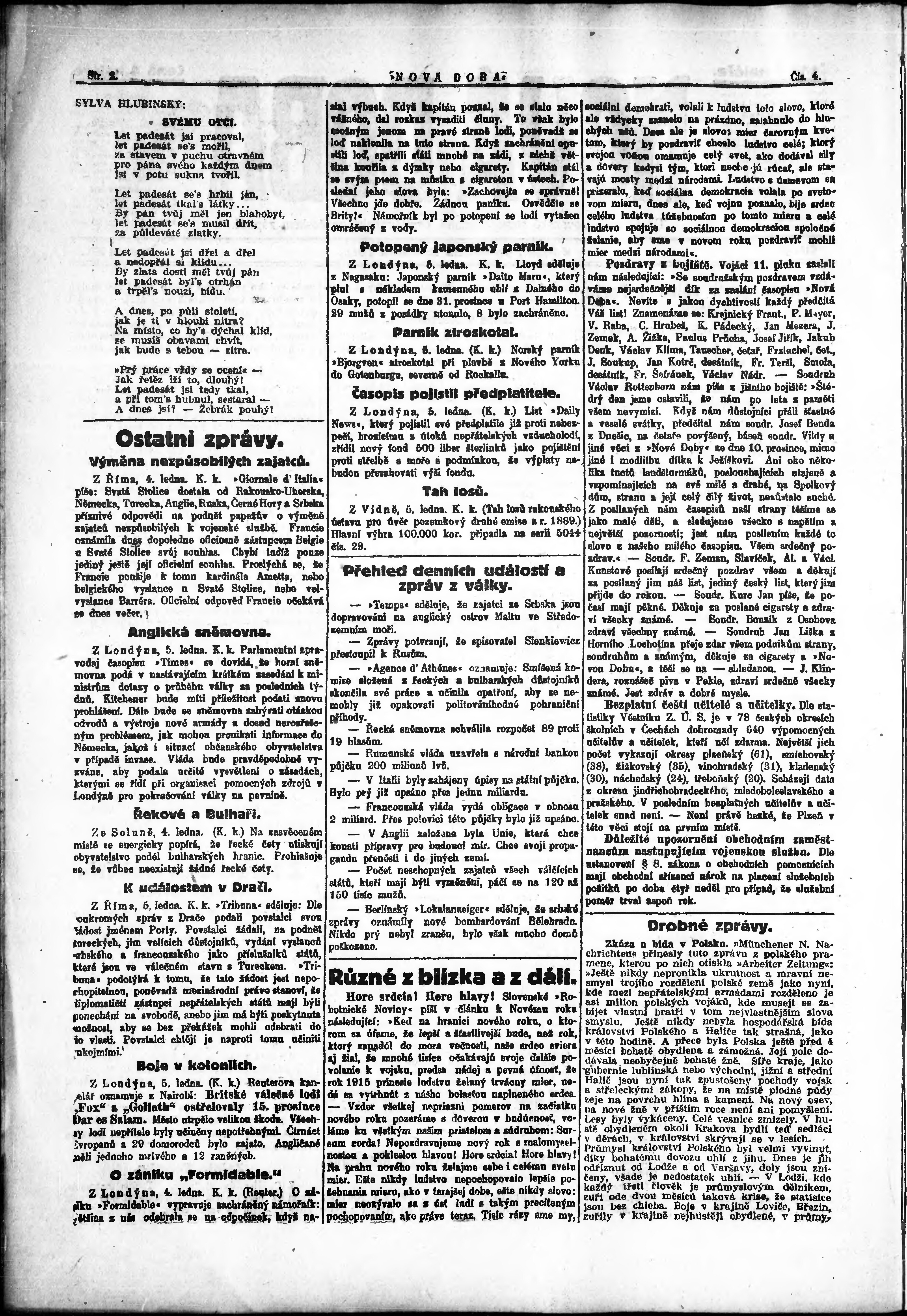 * Datum vydání výtisku: 6.1.1915 Číslo výtisku: 4