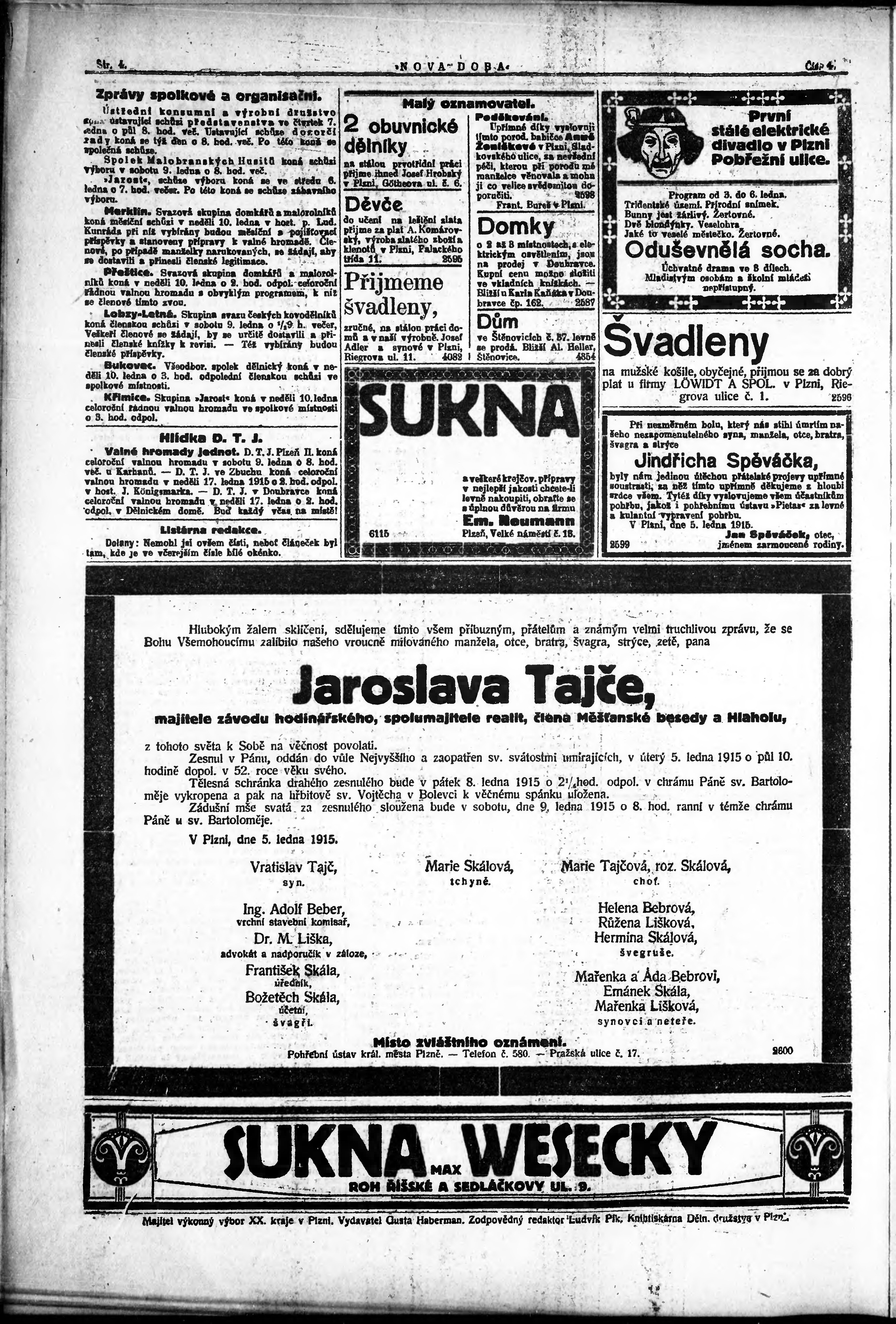 * Datum vydání výtisku: 6.1.1915 Číslo výtisku: 4
