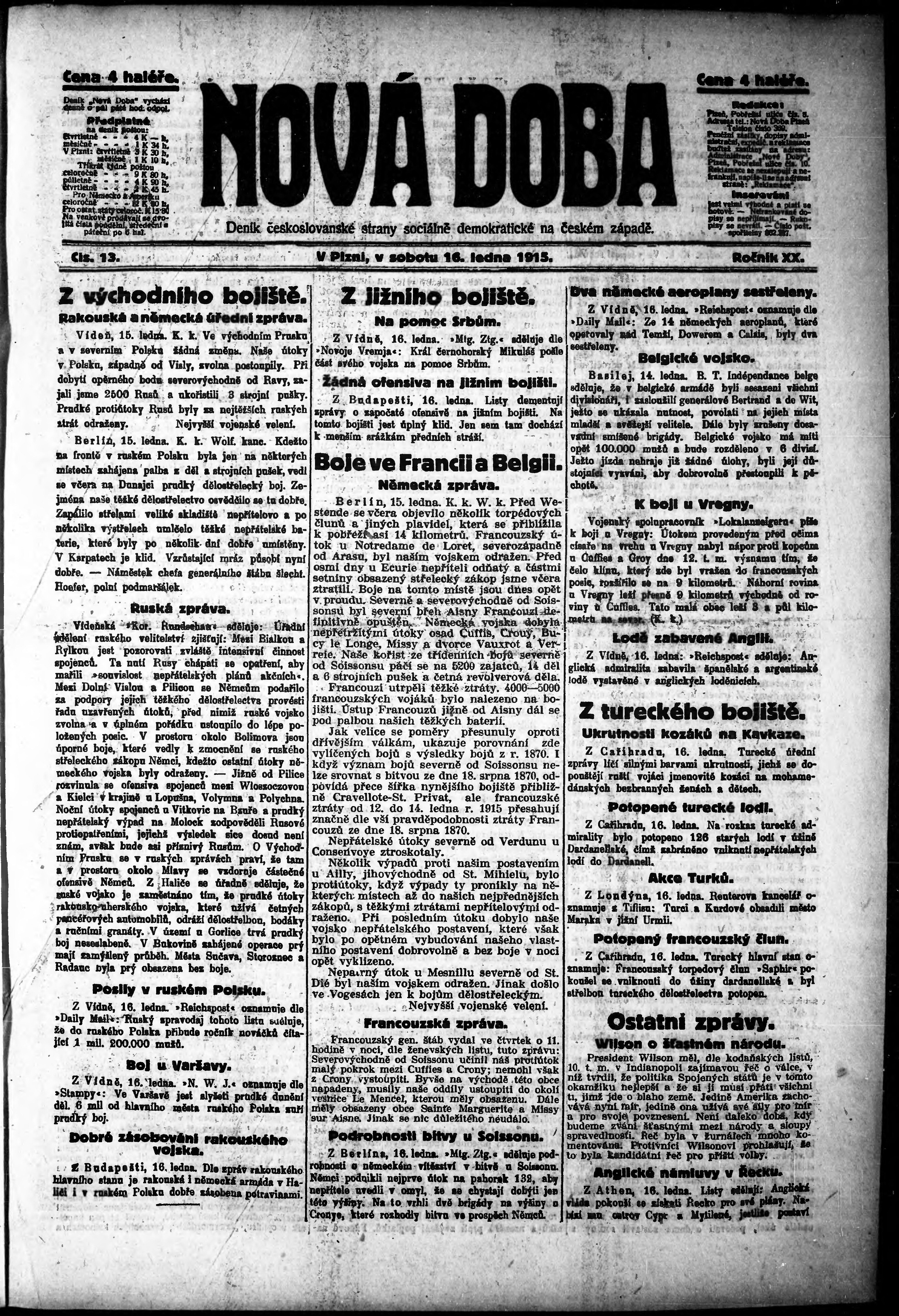 * Datum vydání výtisku: 16.1.1915 Číslo výtisku: 13