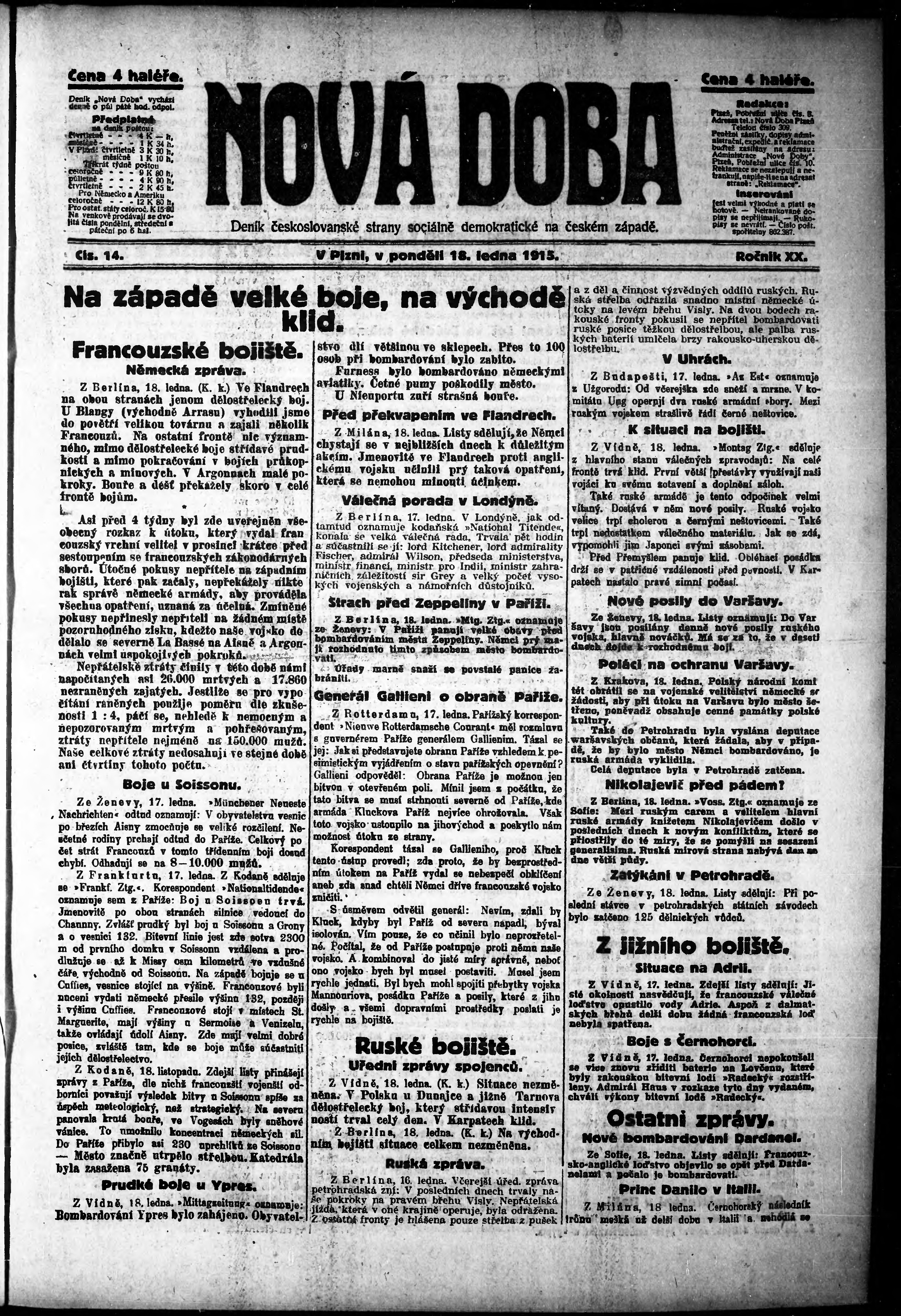 * Datum vydání výtisku: 18.1.1915 Číslo výtisku: 14