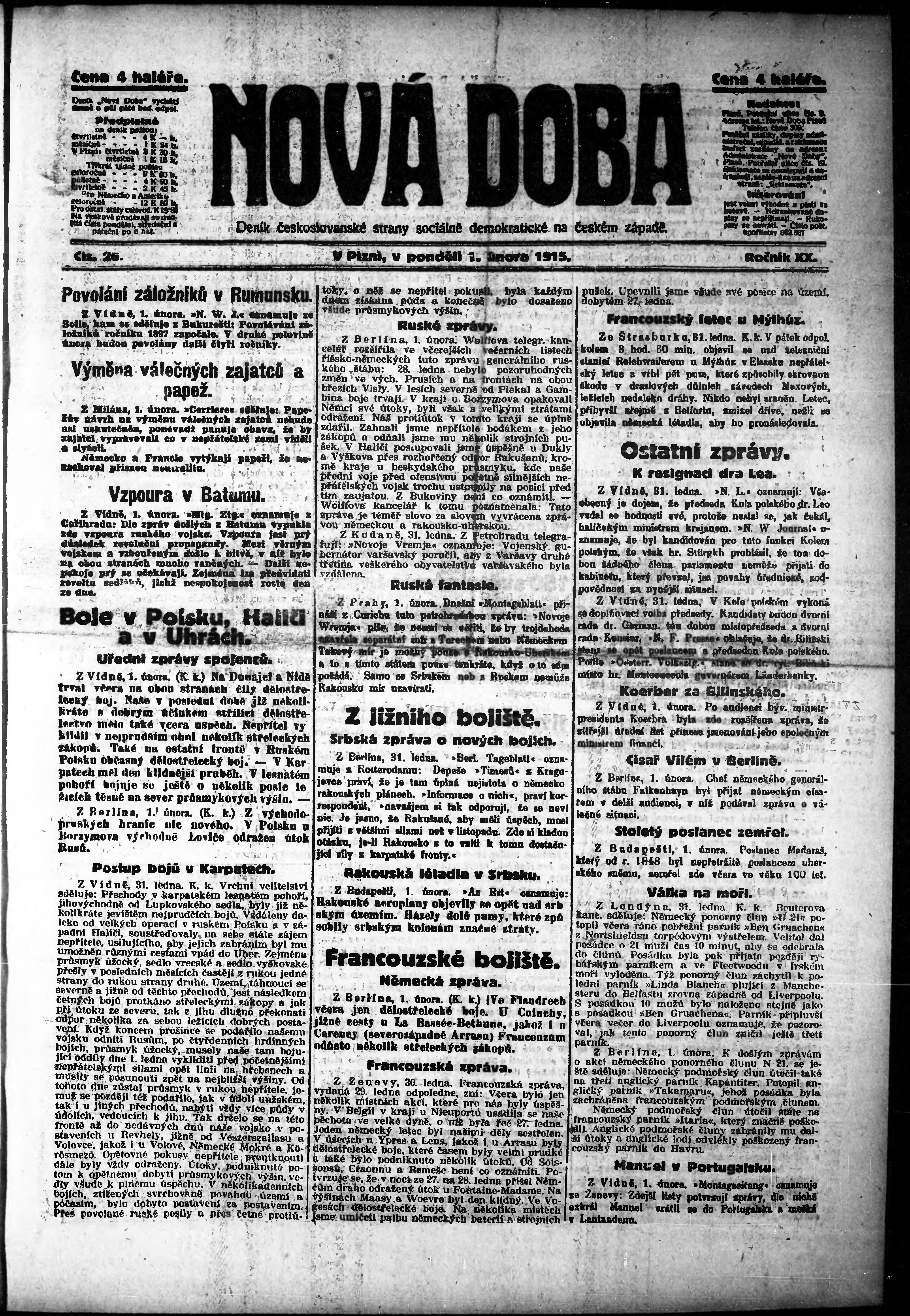 * Datum vydání výtisku: 1.2.1915 Číslo výtisku: 26