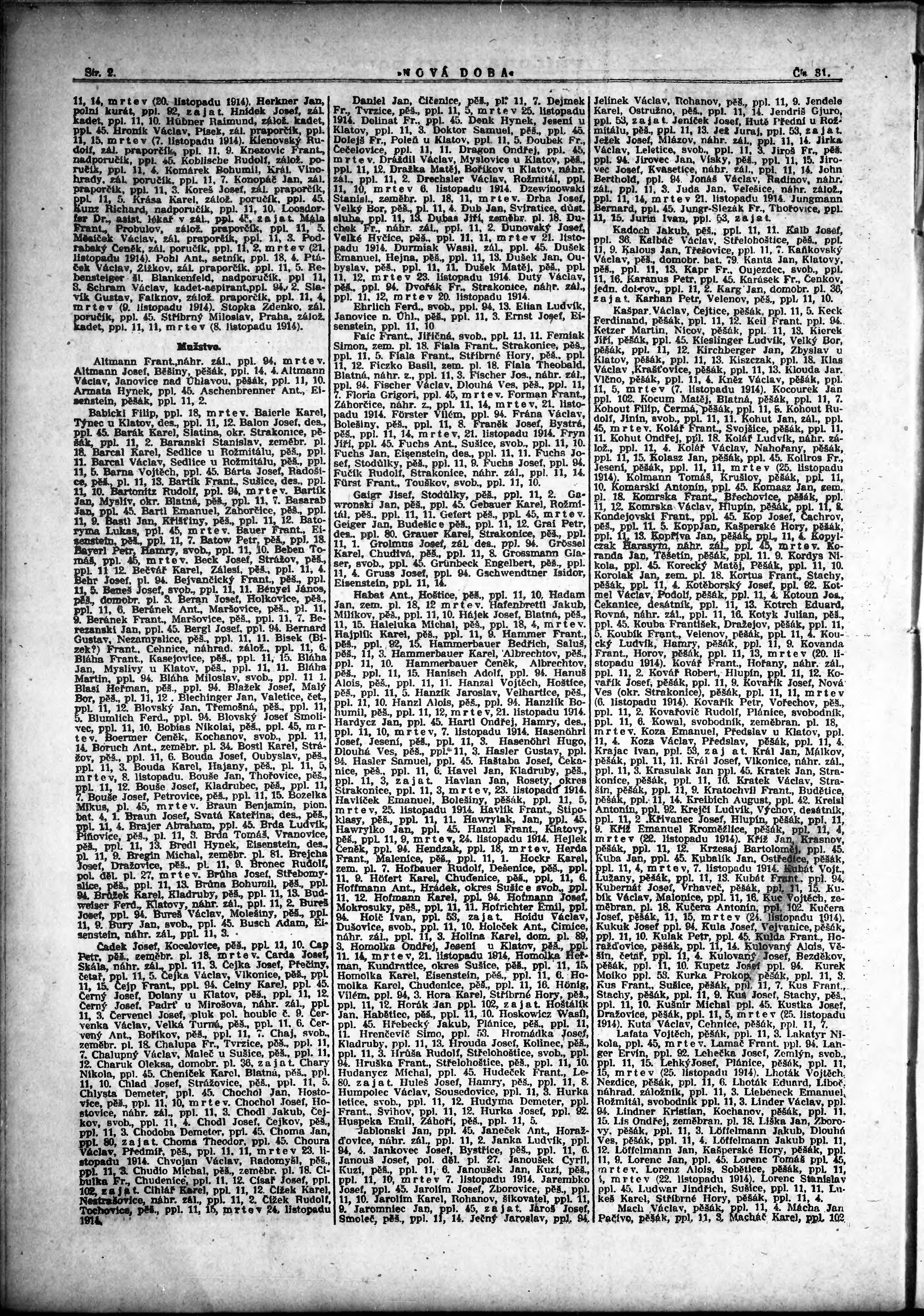 * Datum vydání výtisku: 6.2.1915 Číslo výtisku: 31 Typ výtisku: příloha