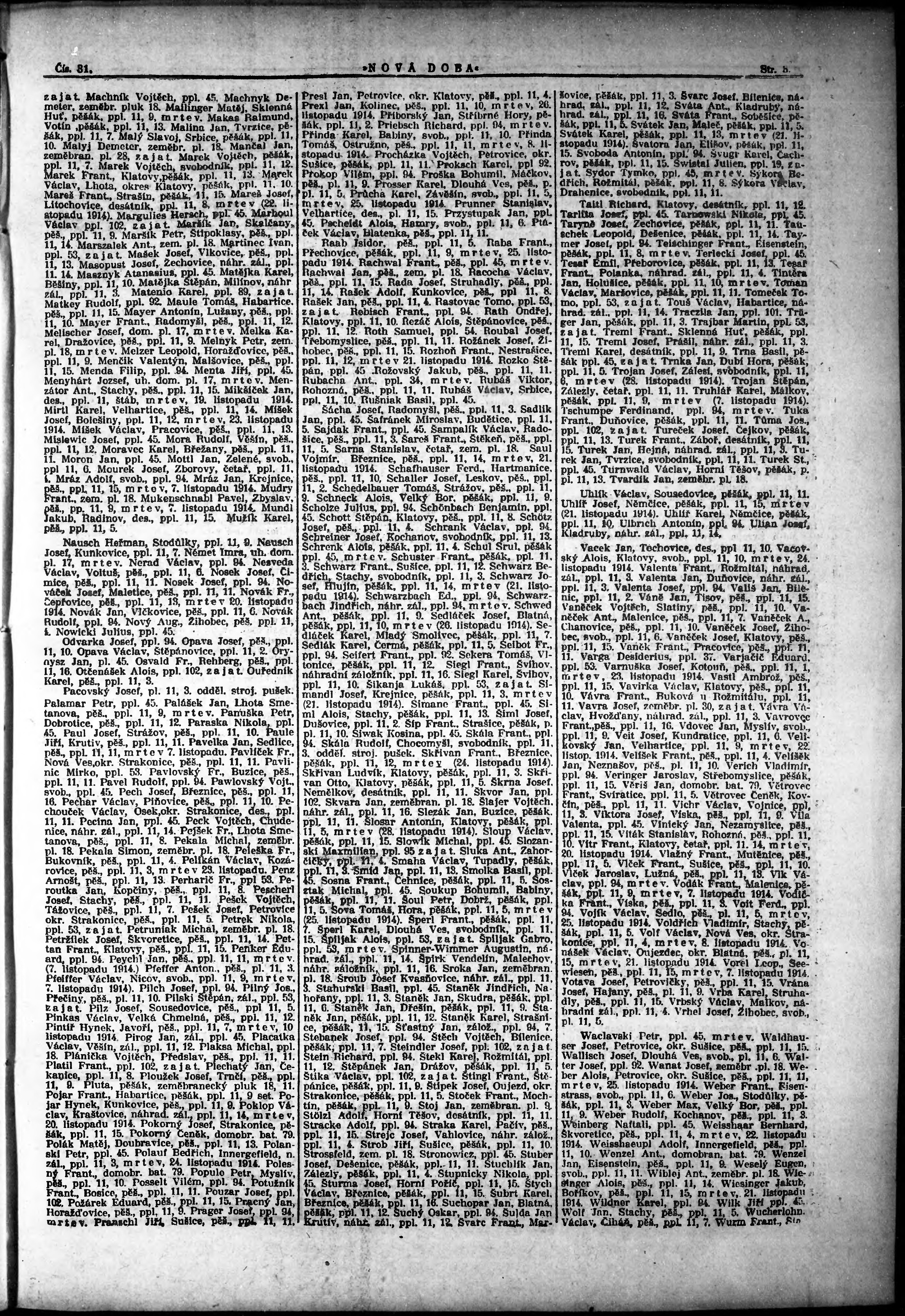 * Datum vydání výtisku: 6.2.1915 Číslo výtisku: 31 Typ výtisku: příloha