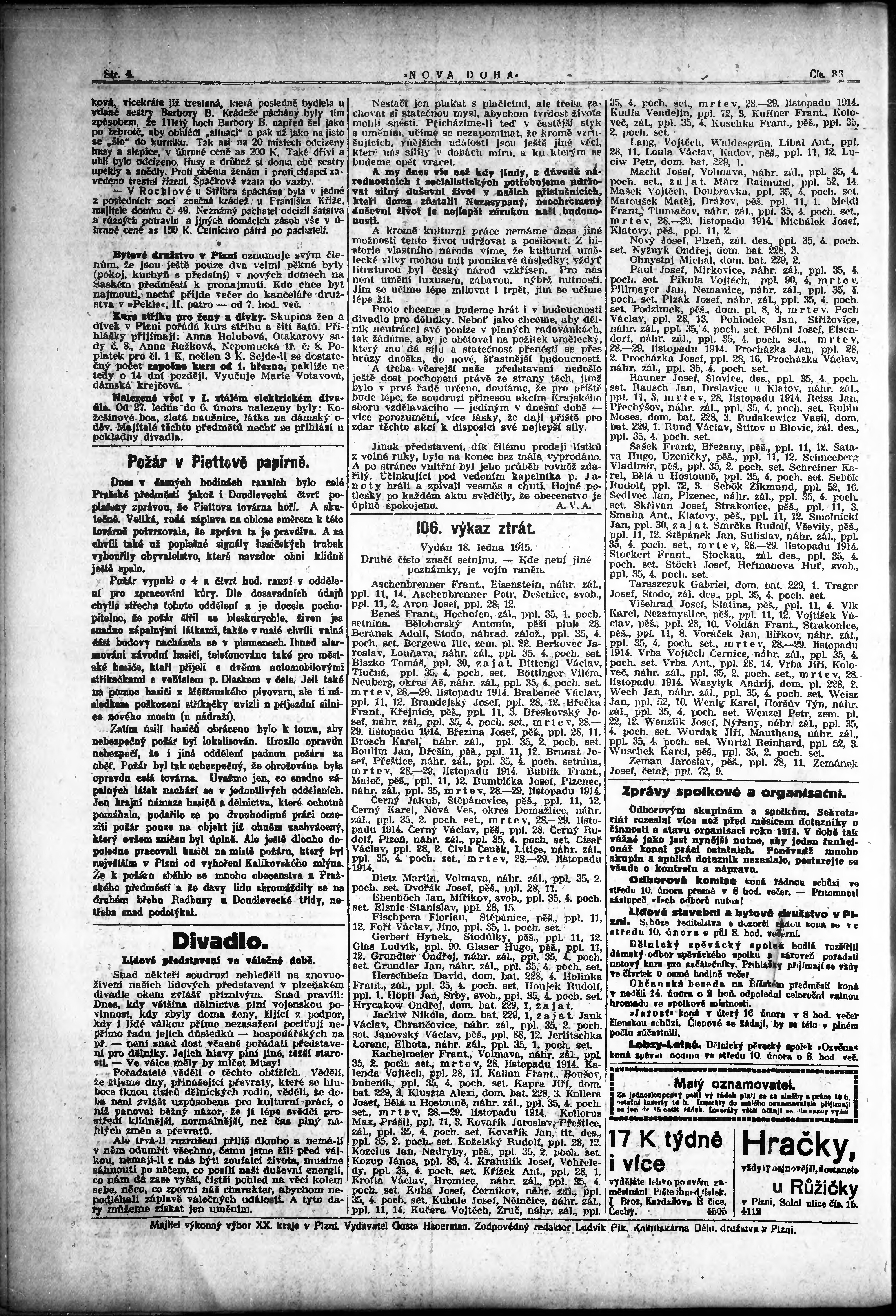 * Datum vydání výtisku: 9.2.1915 Číslo výtisku: 33