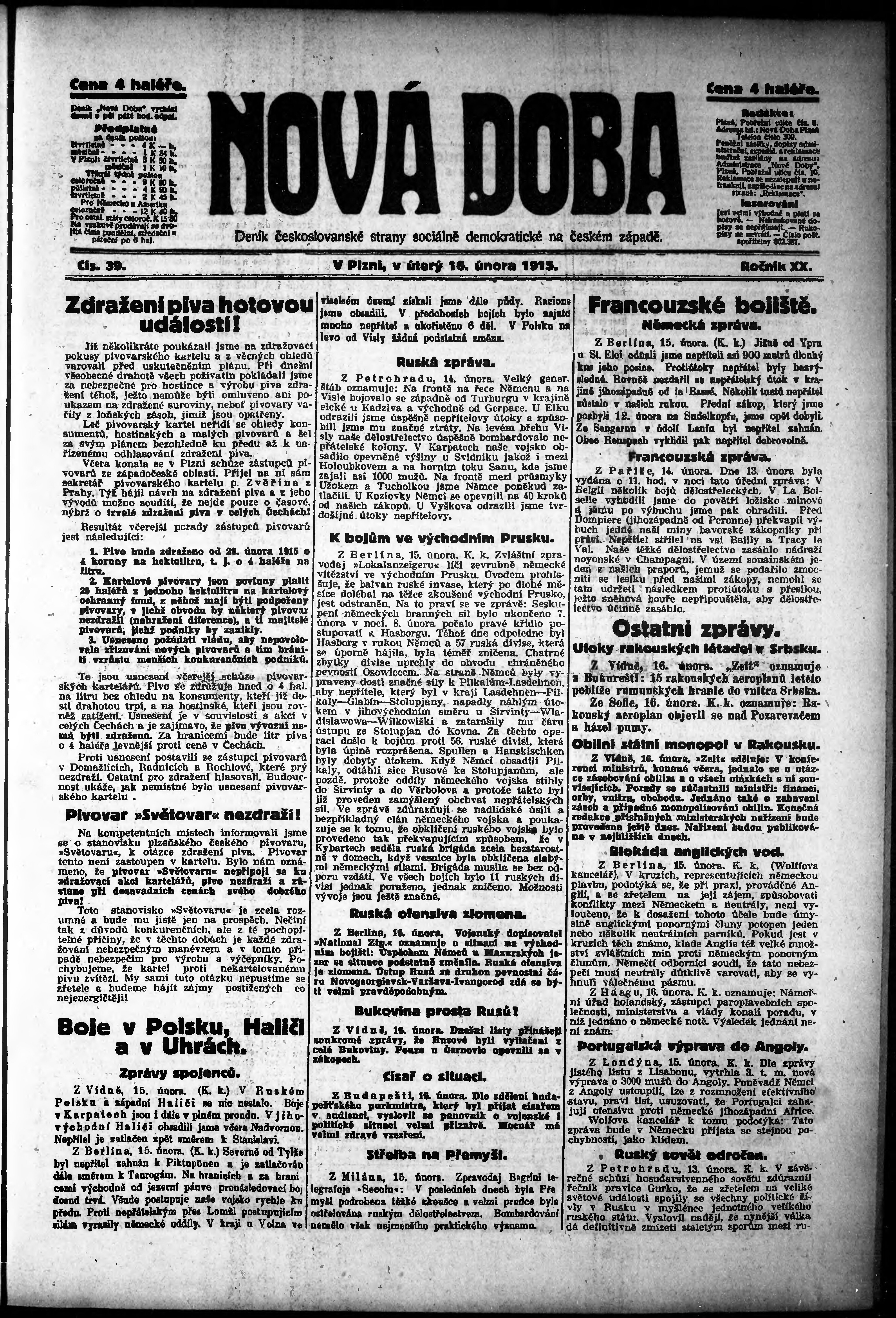 * Datum vydání výtisku: 16.2.1915 Číslo výtisku: 39