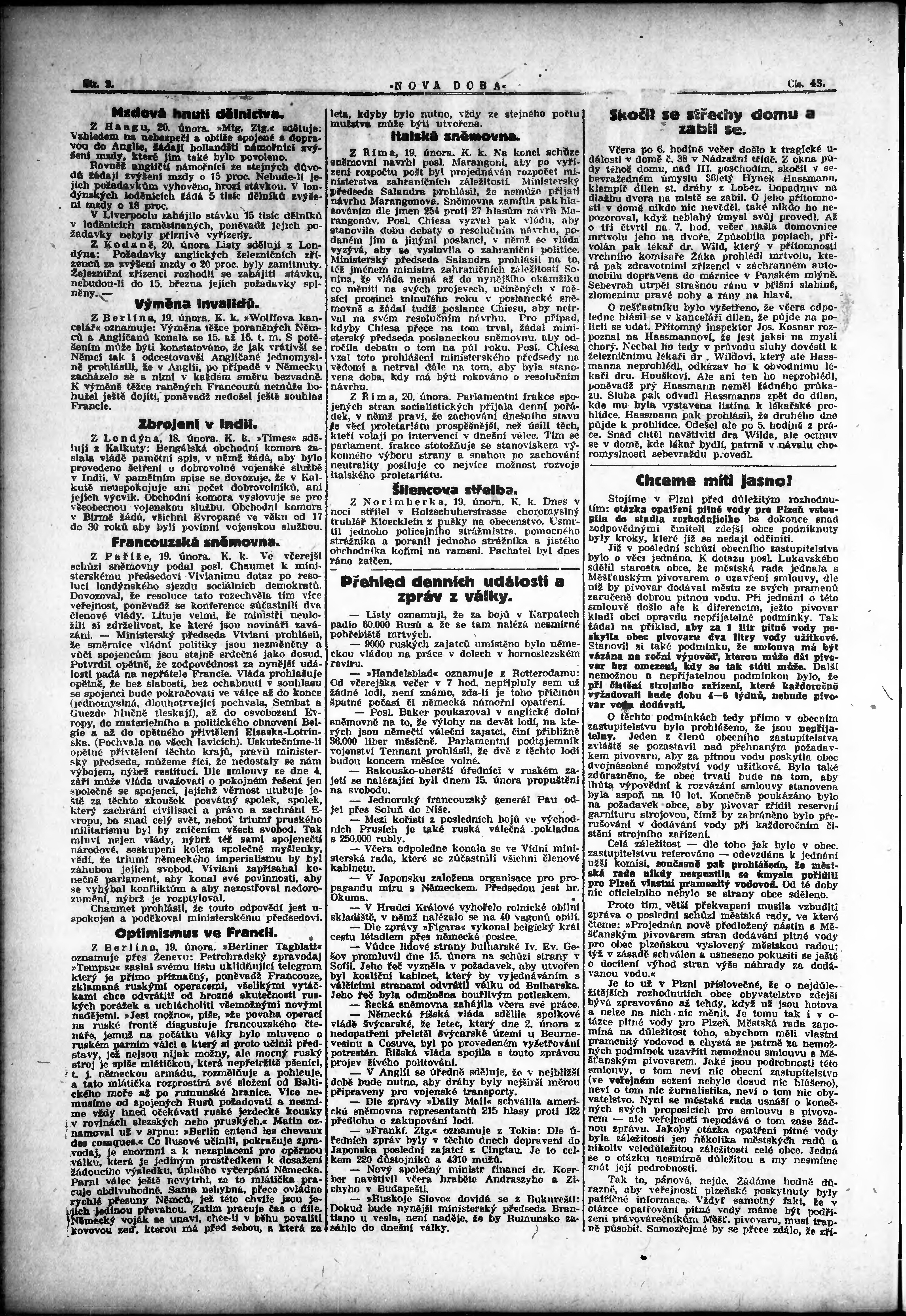 * Datum vydání výtisku: 20.2.1915 Číslo výtisku: 43