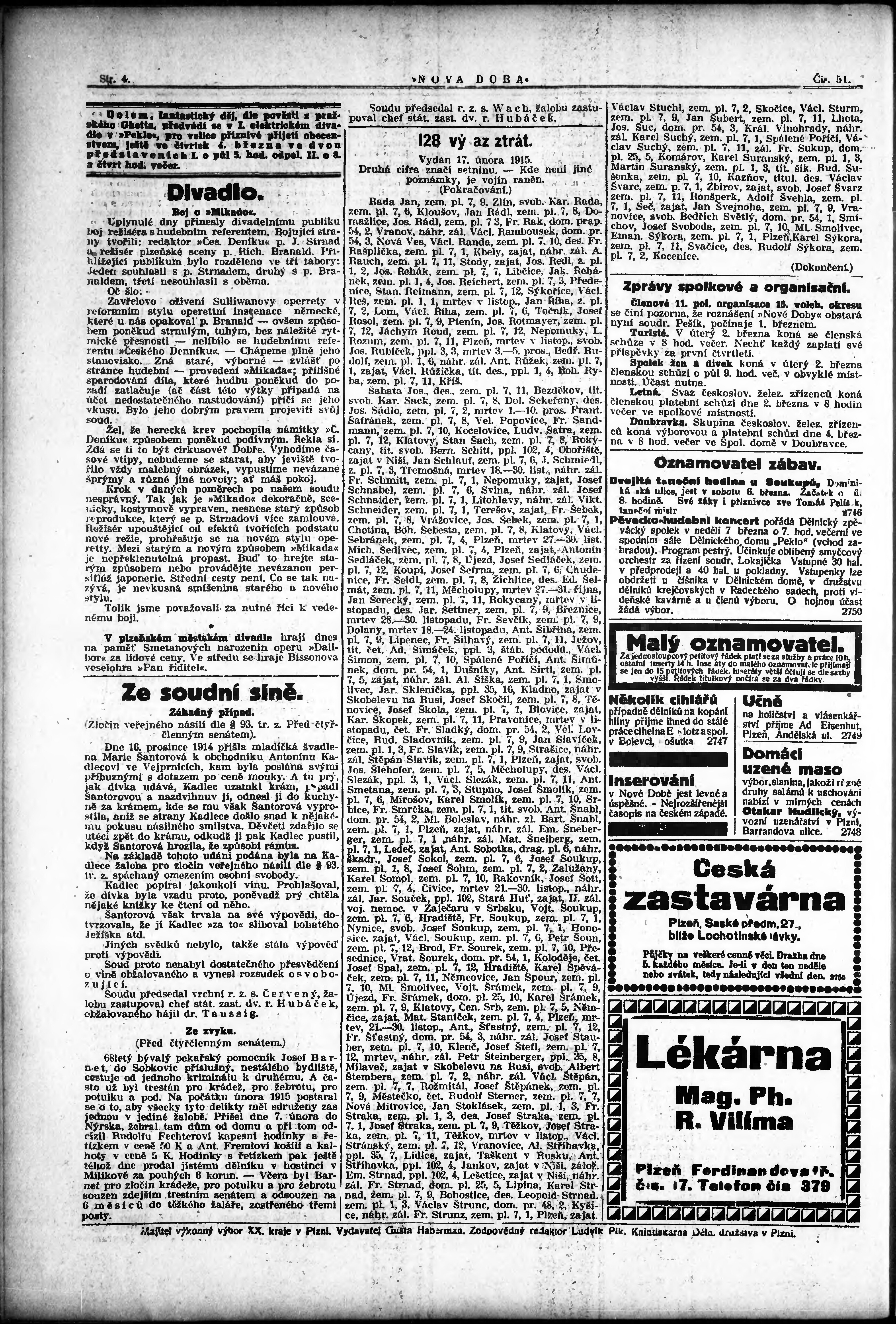 * Datum vydání výtisku: 2.3.1915 Číslo výtisku: 51