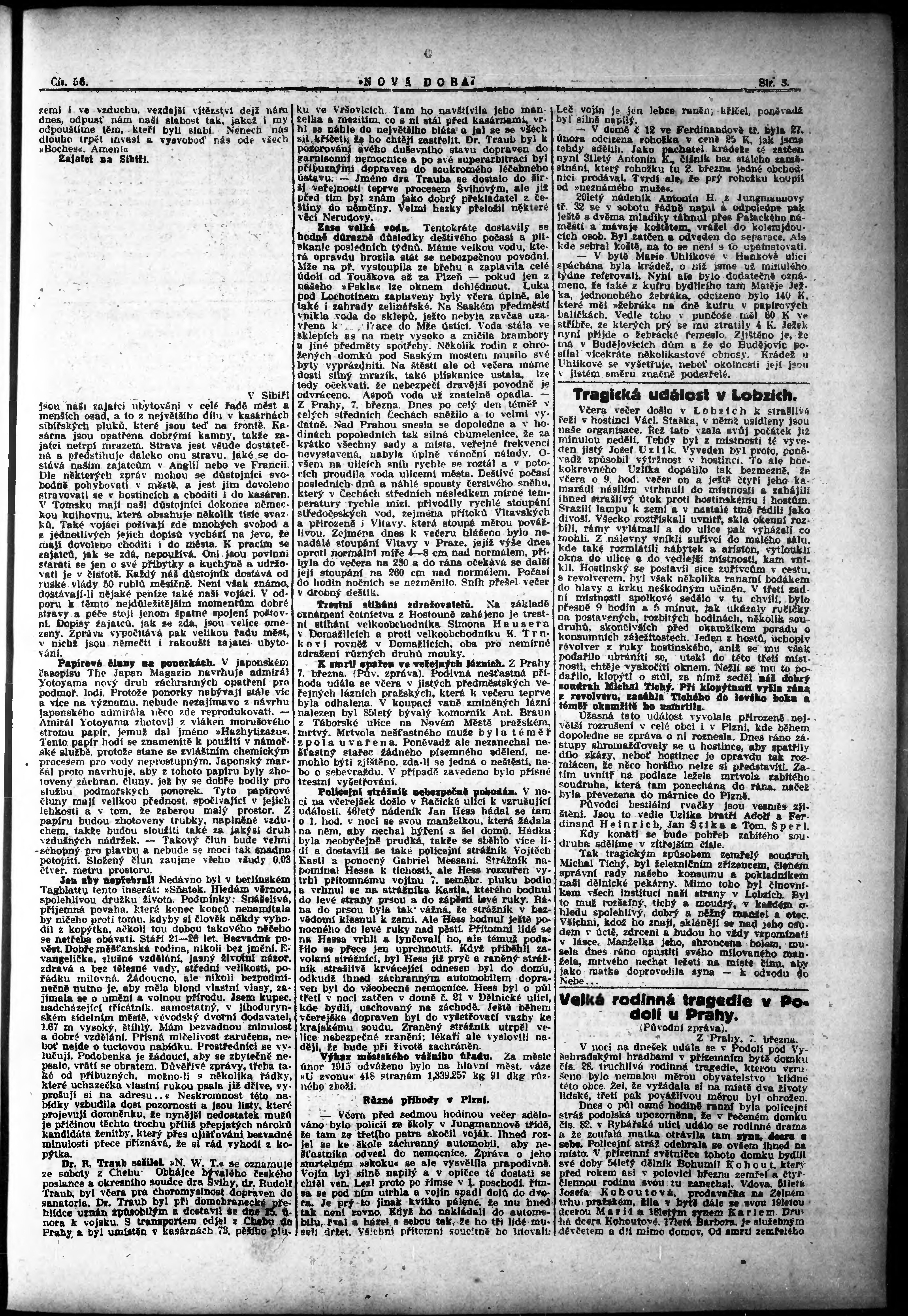 * Datum vydání výtisku: 8.3.1915 Číslo výtisku: 56