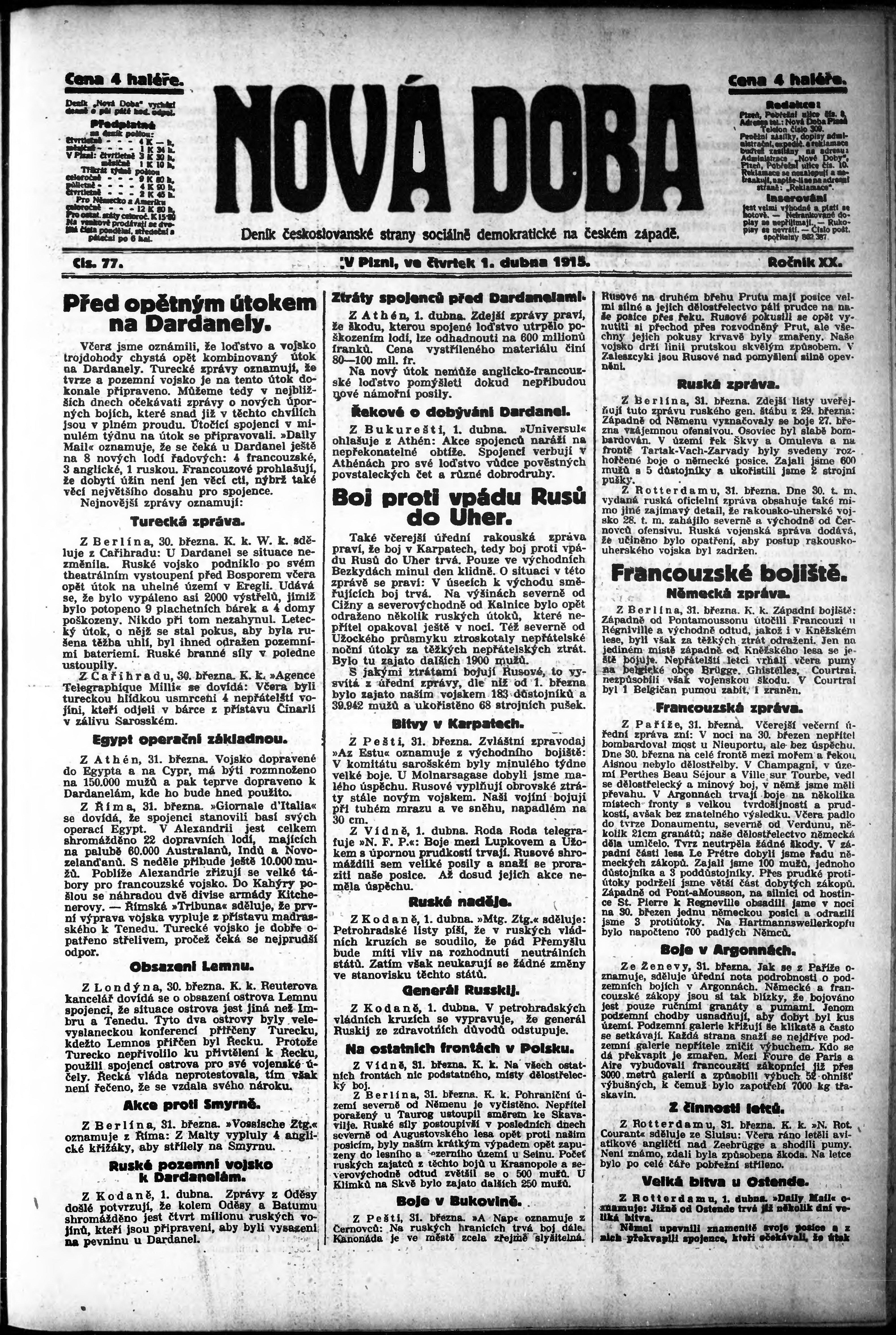 * Datum vydání výtisku: 1.4.1915 Číslo výtisku: 77
