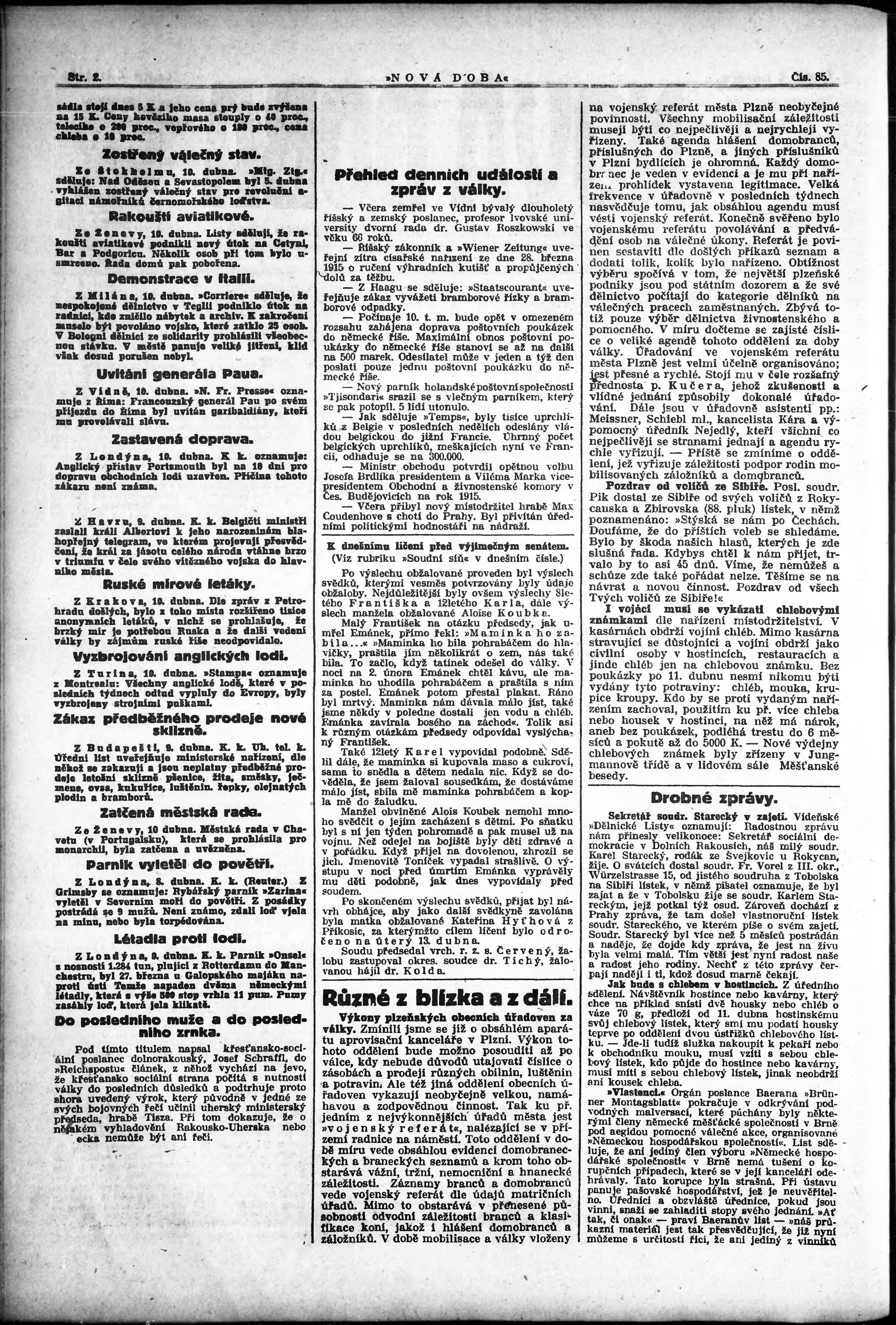 * Datum vydání výtisku: 10.4.1915 Číslo výtisku: 85