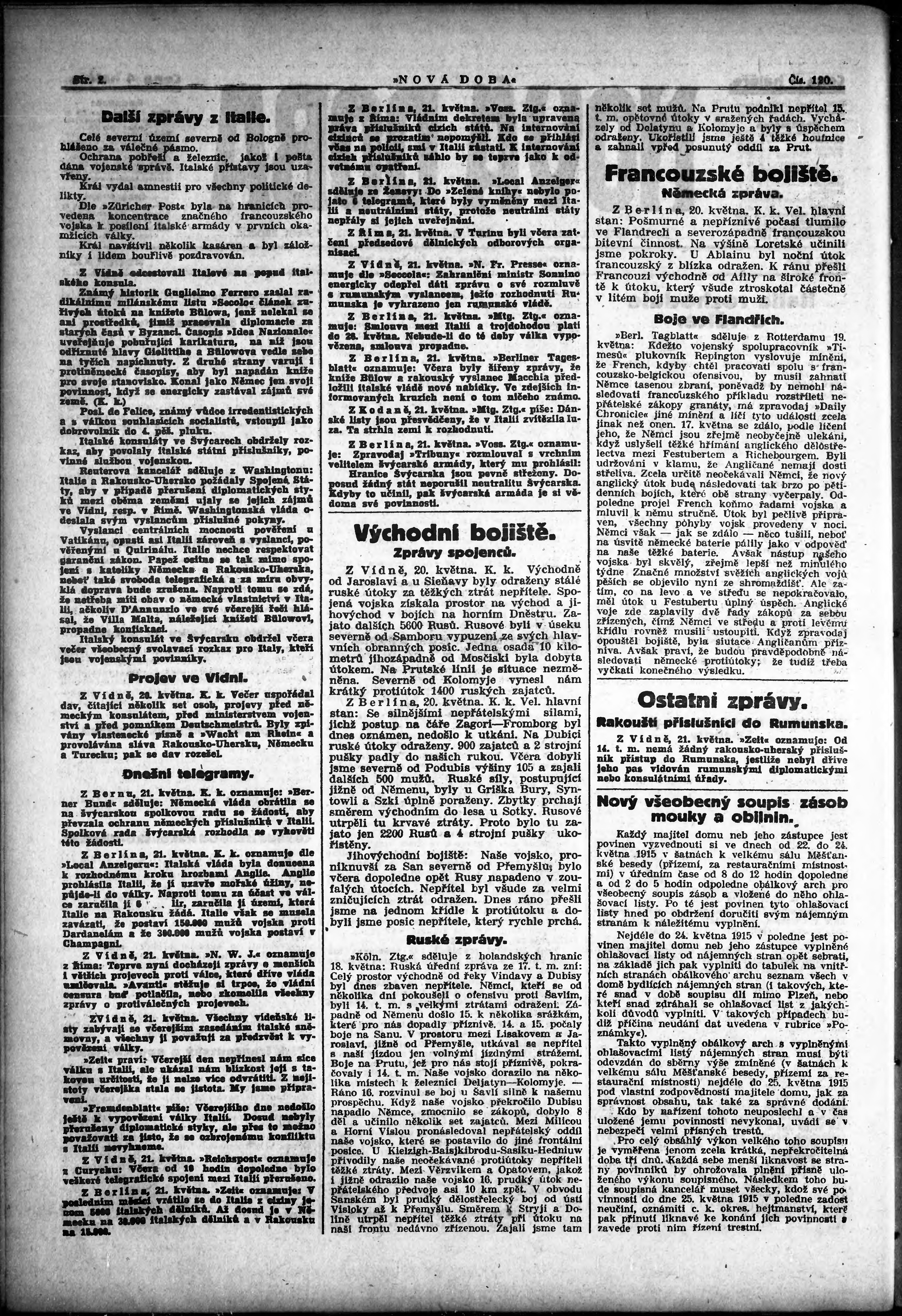 * Datum vydání výtisku: 21.5.1915 Číslo výtisku: 120