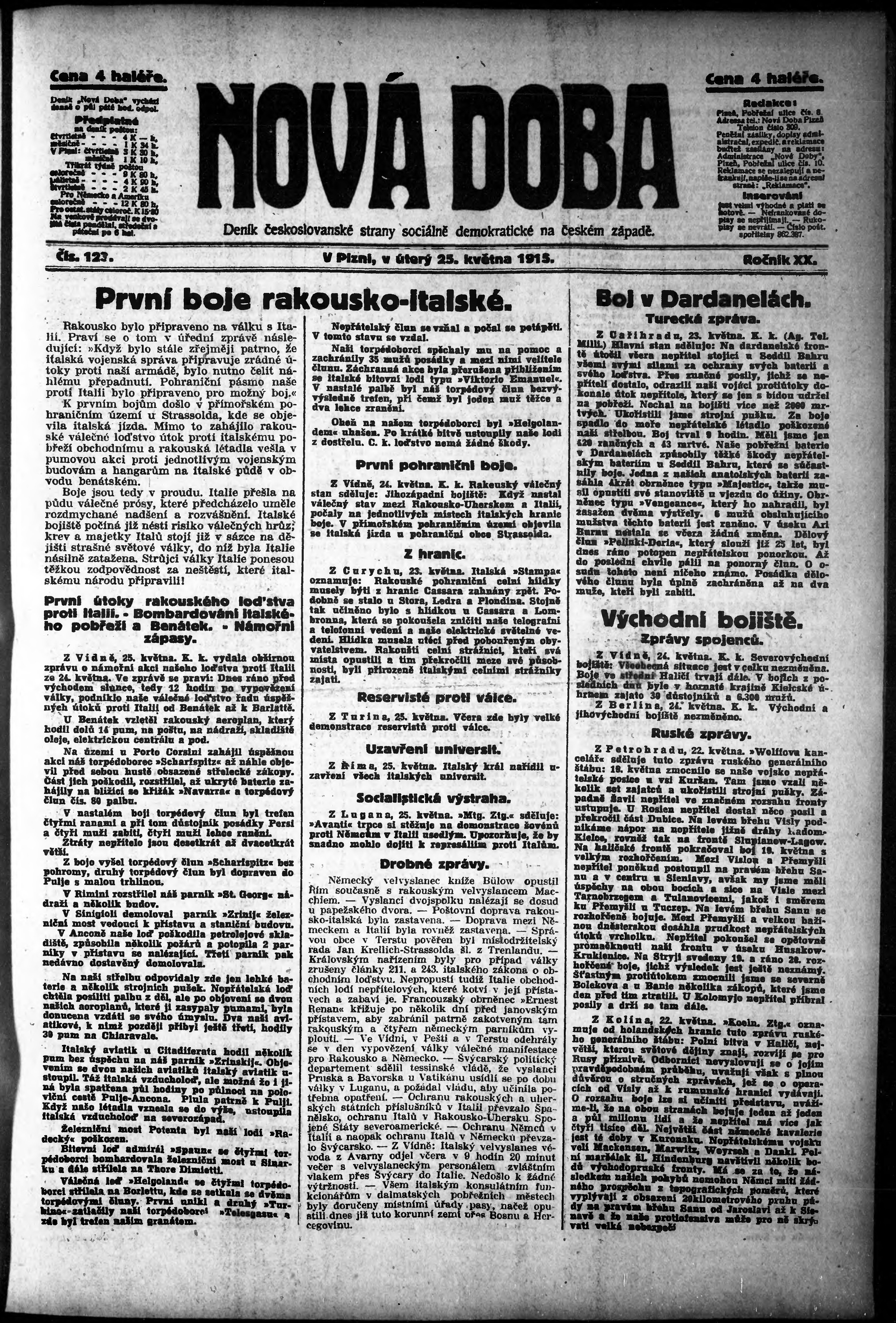 * Datum vydání výtisku: 25.5.1915 Číslo výtisku: 123