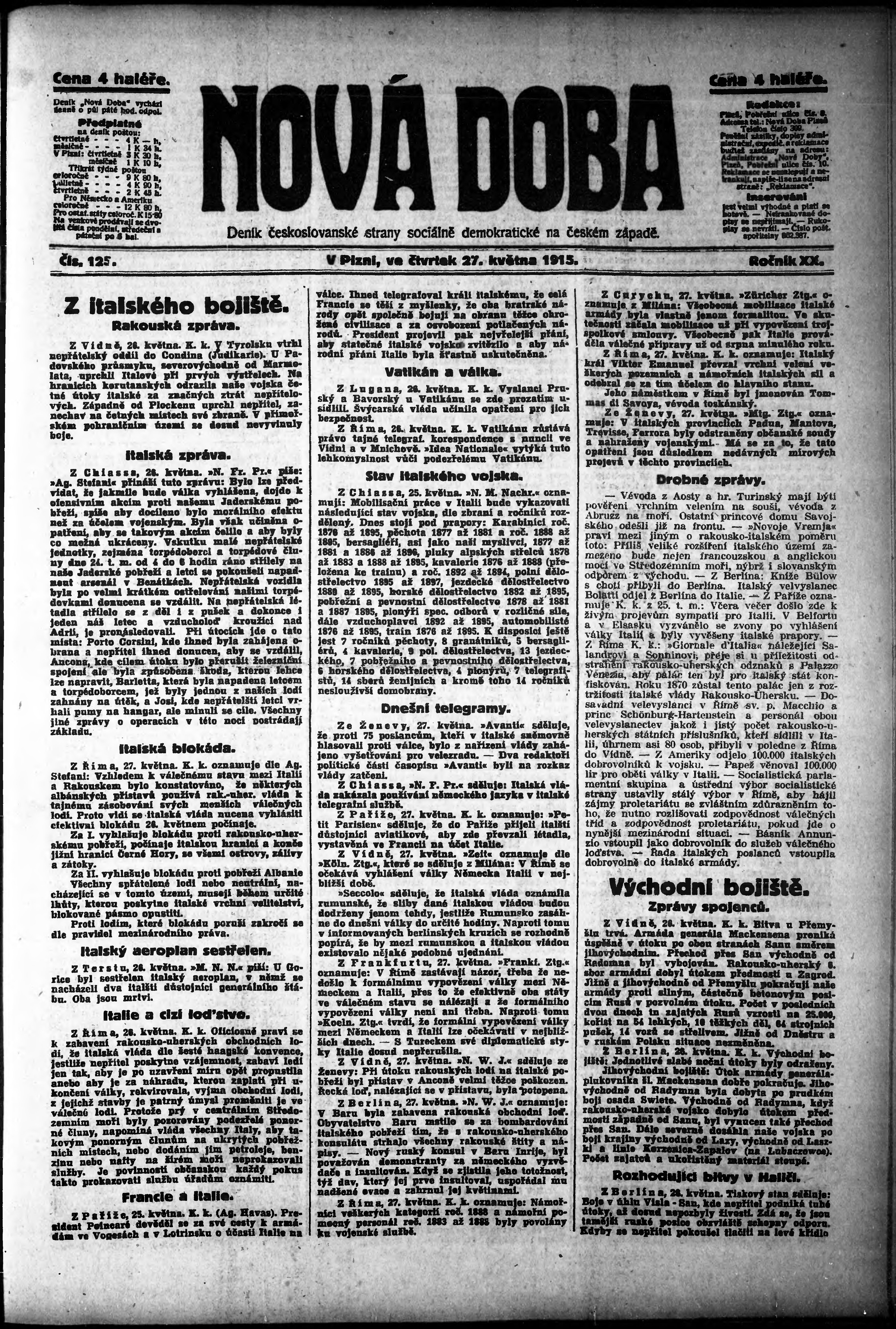 * Datum vydání výtisku: 27.5.1915 Číslo výtisku: 125
