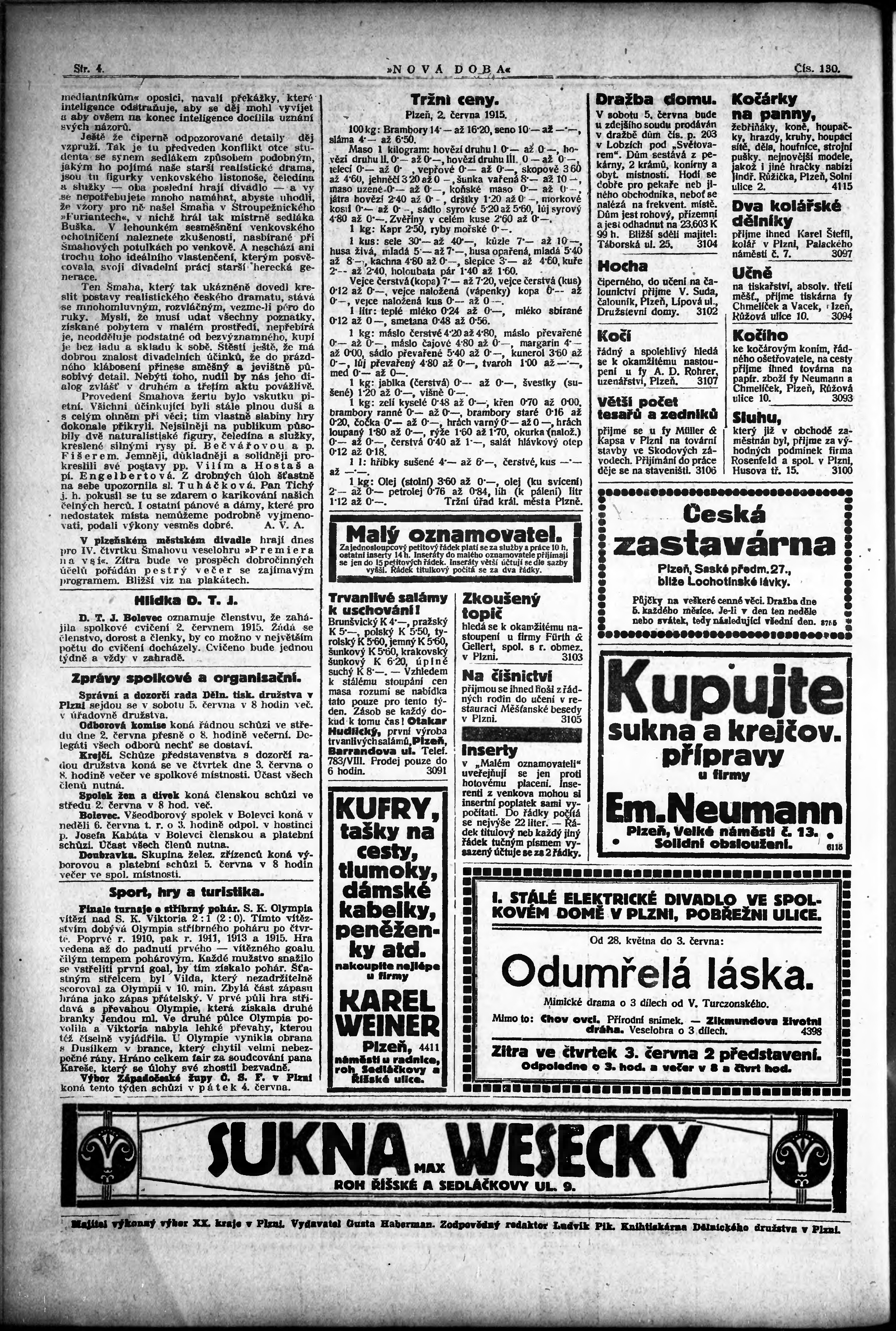 * Datum vydání výtisku: 2.6.1915 Číslo výtisku: 130