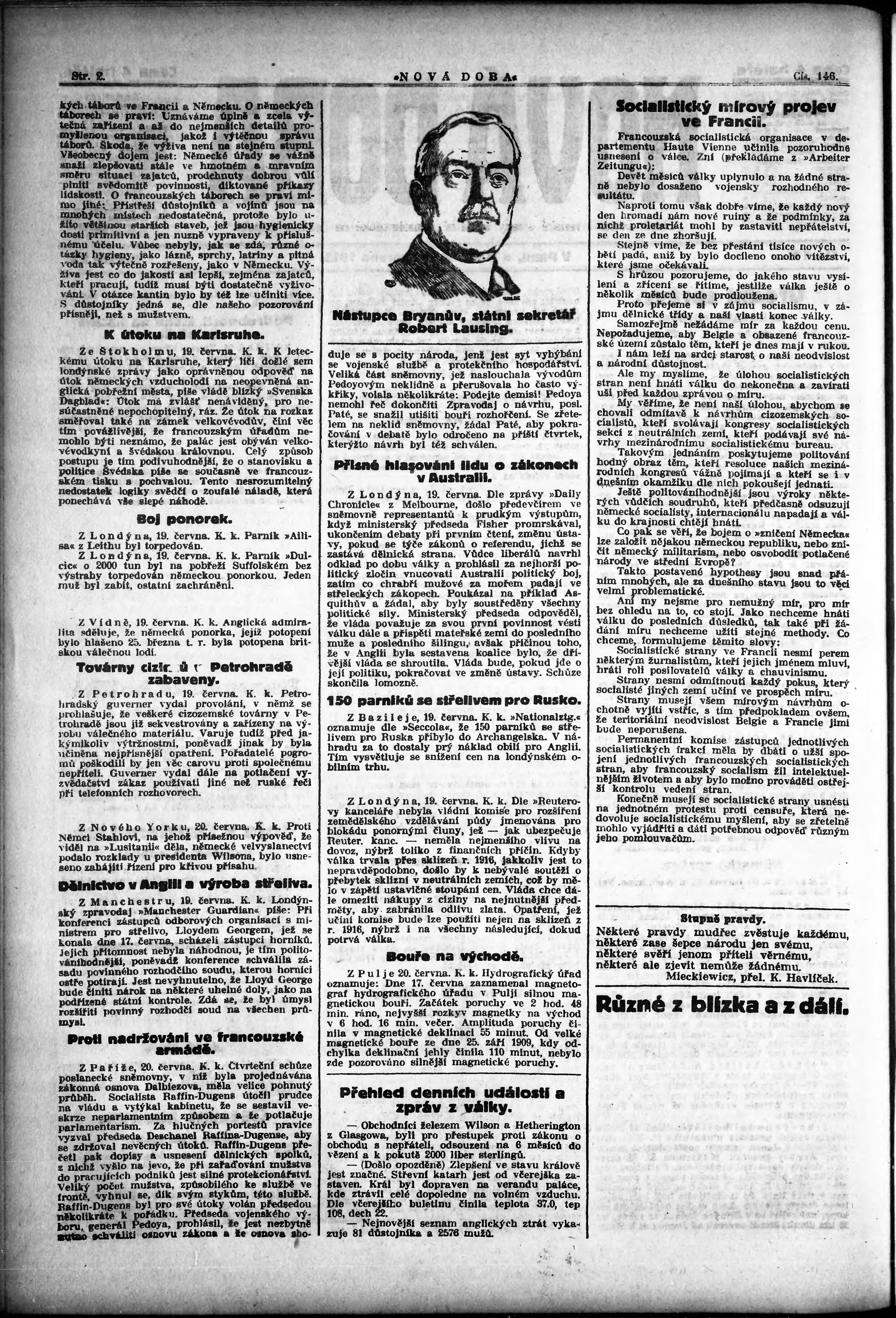 * Datum vydání výtisku: 21.6.1915 Číslo výtisku: 146