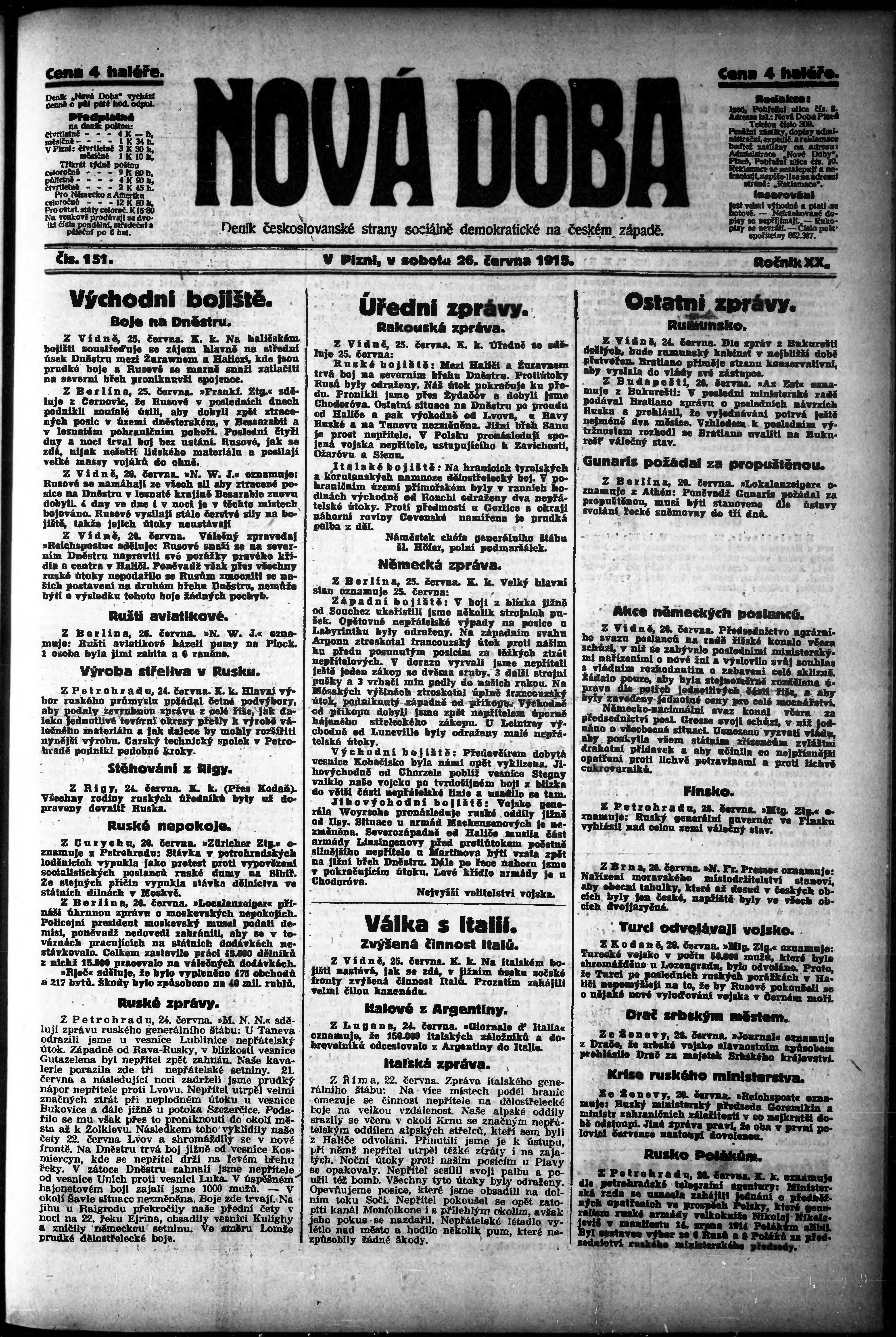 * Datum vydání výtisku: 26.6.1915 Číslo výtisku: 151