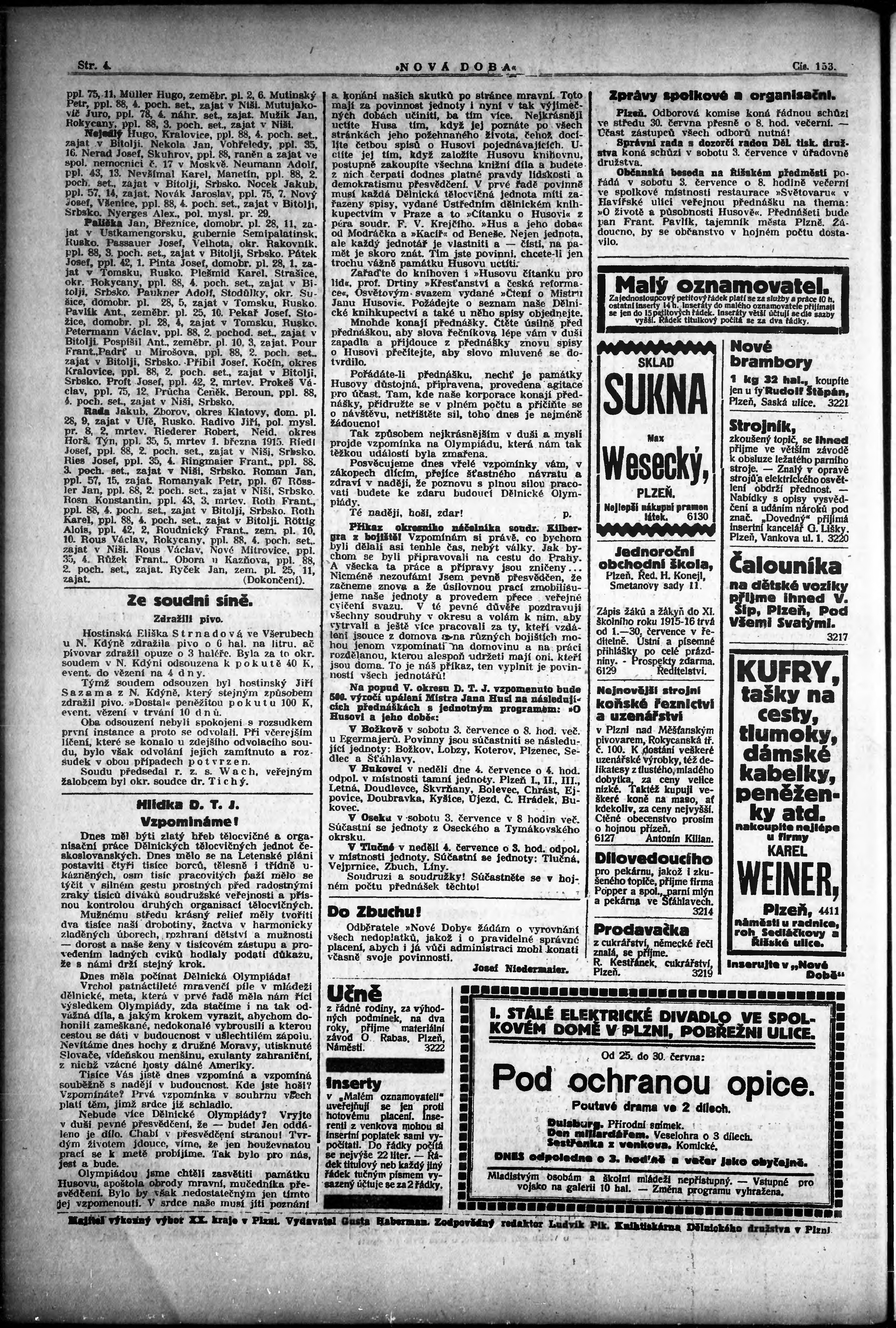 * Datum vydání výtisku: 29.6.1915 Číslo výtisku: 153