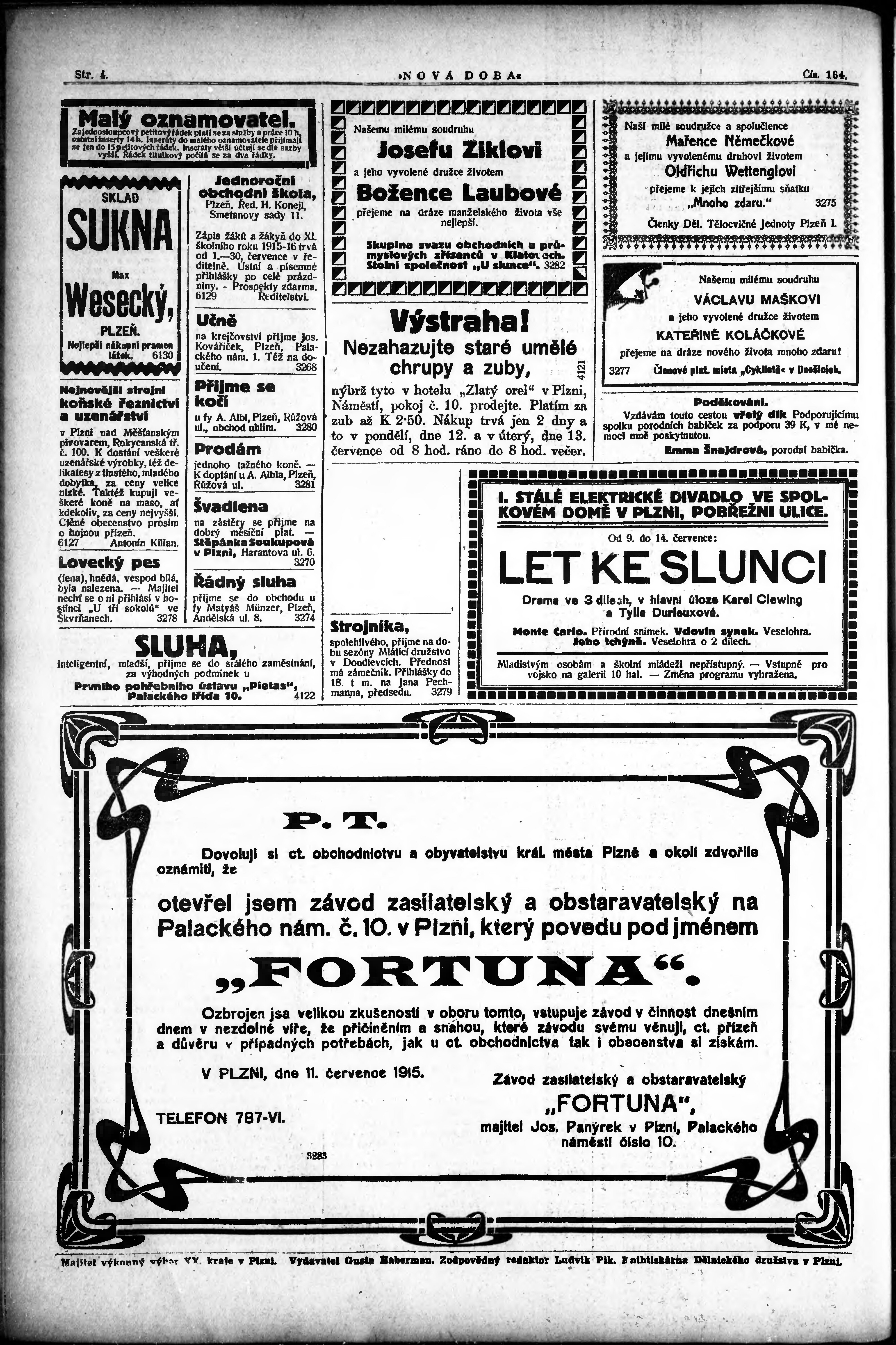 * Datum vydání výtisku: 12.7.1915 Číslo výtisku: 164