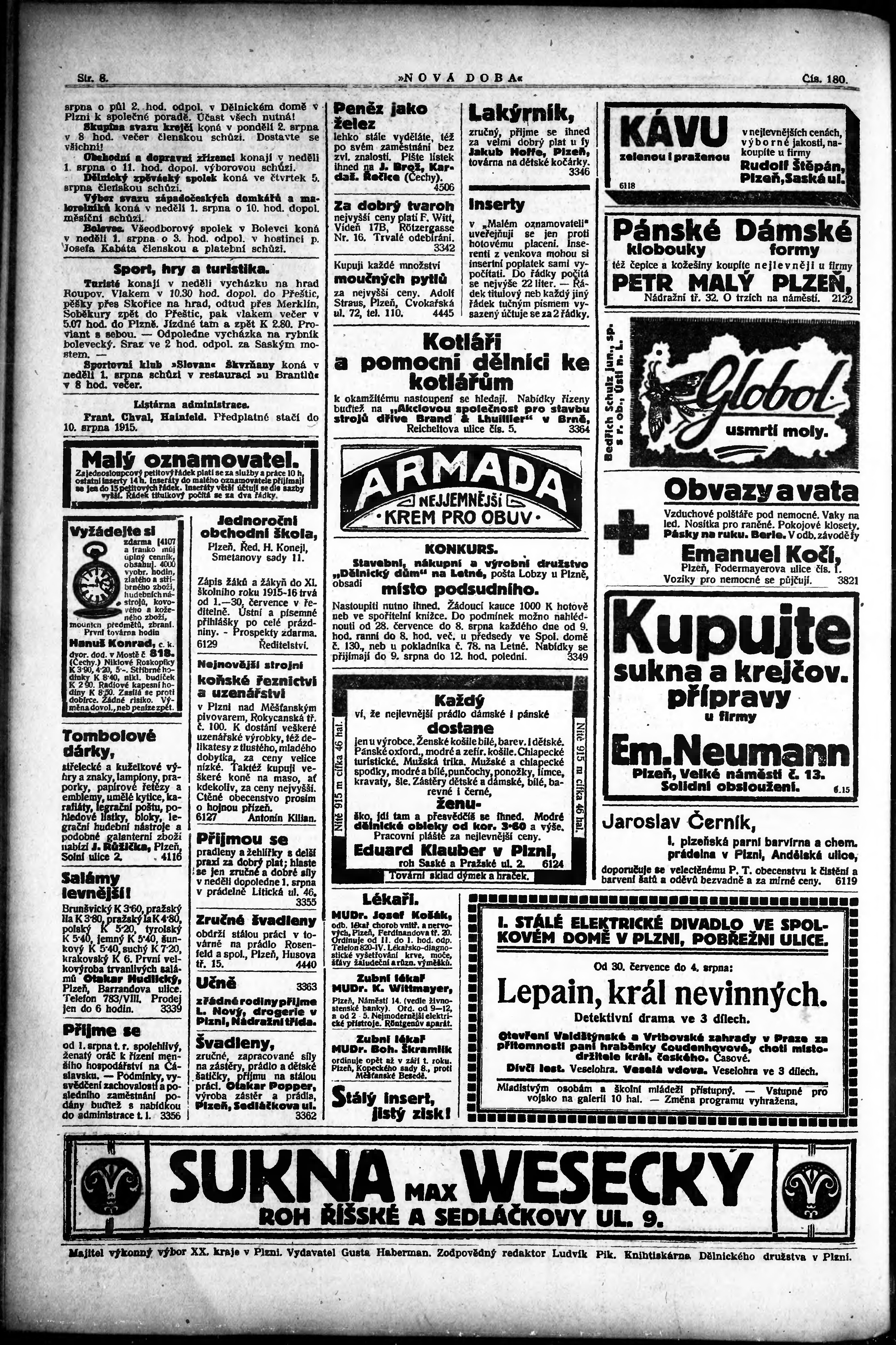 * Datum vydání výtisku: 30.7.1915 Číslo výtisku: 180
