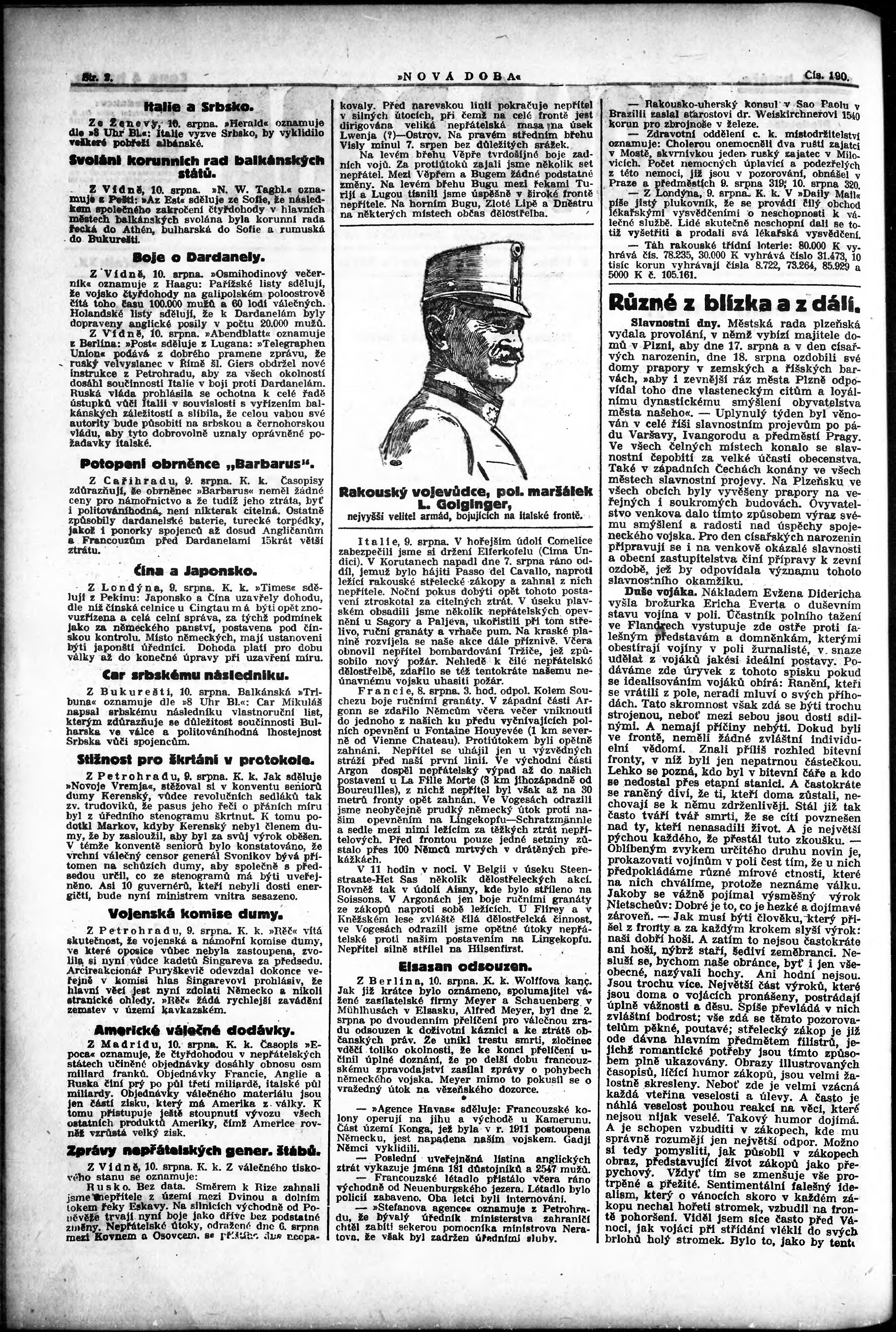 * Datum vydání výtisku: 11.8.1915 Číslo výtisku: 190
