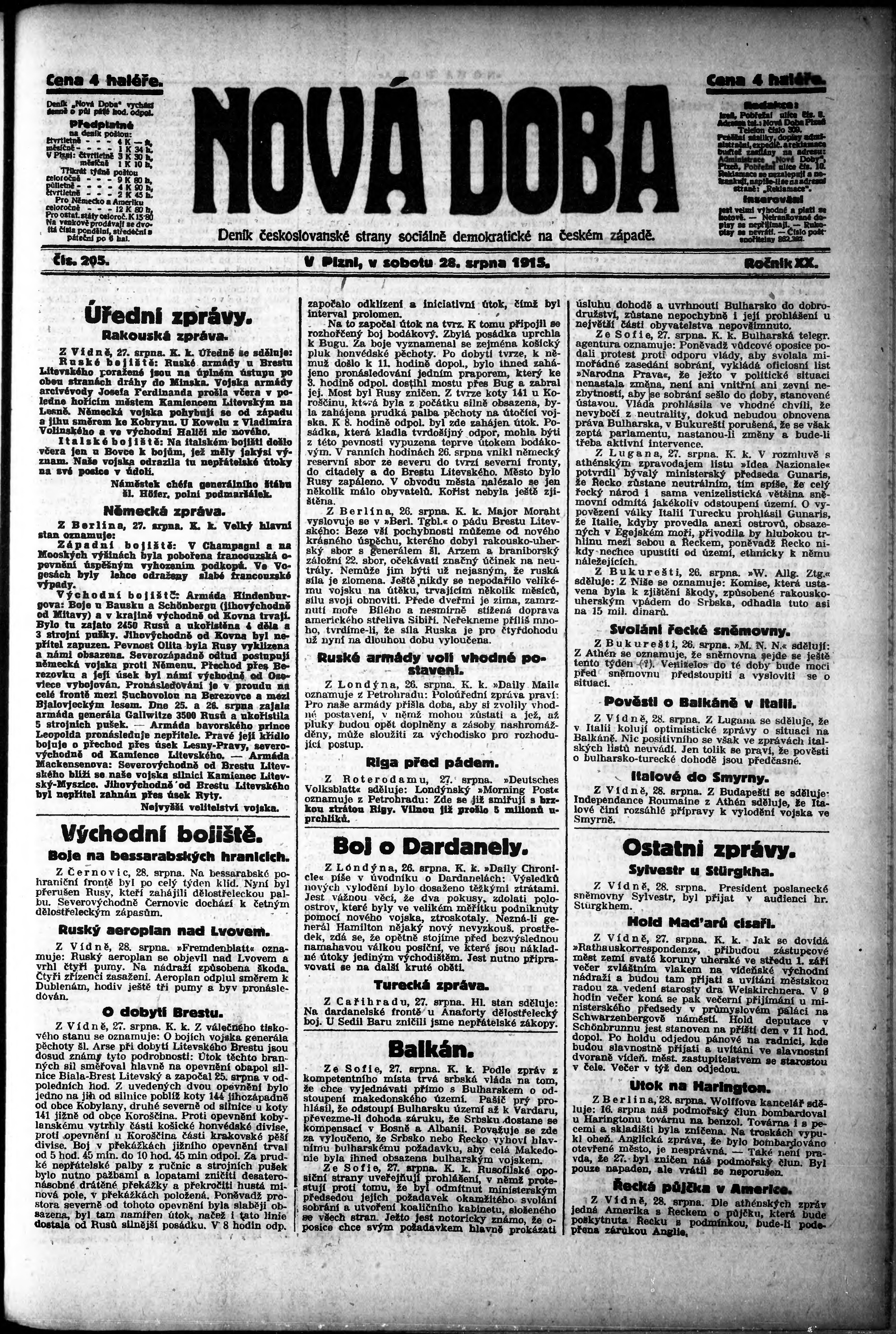 * Datum vydání výtisku: 28.8.1915 Číslo výtisku: 205