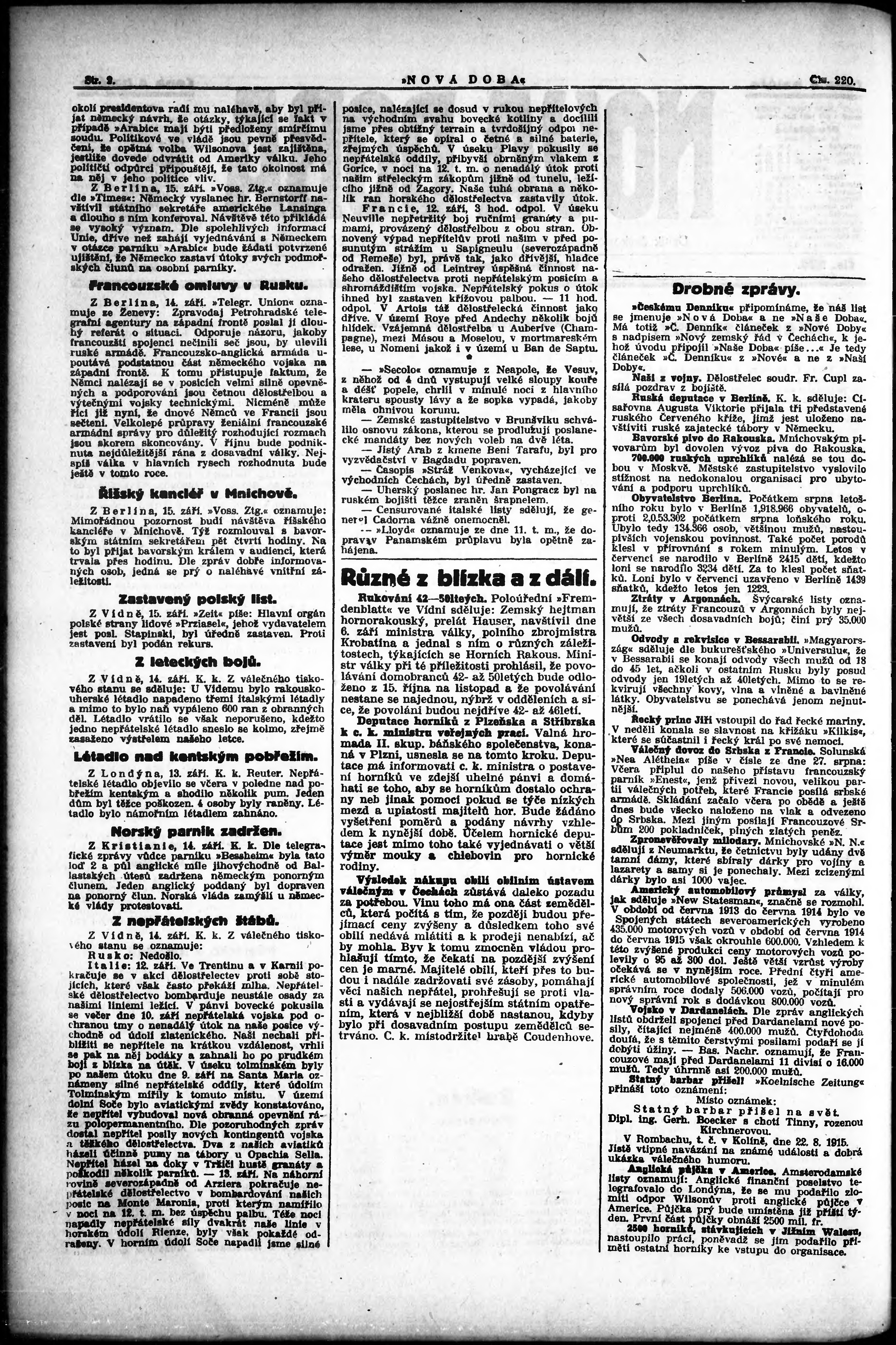 * Datum vydání výtisku: 15.9.1915 Číslo výtisku: 220
