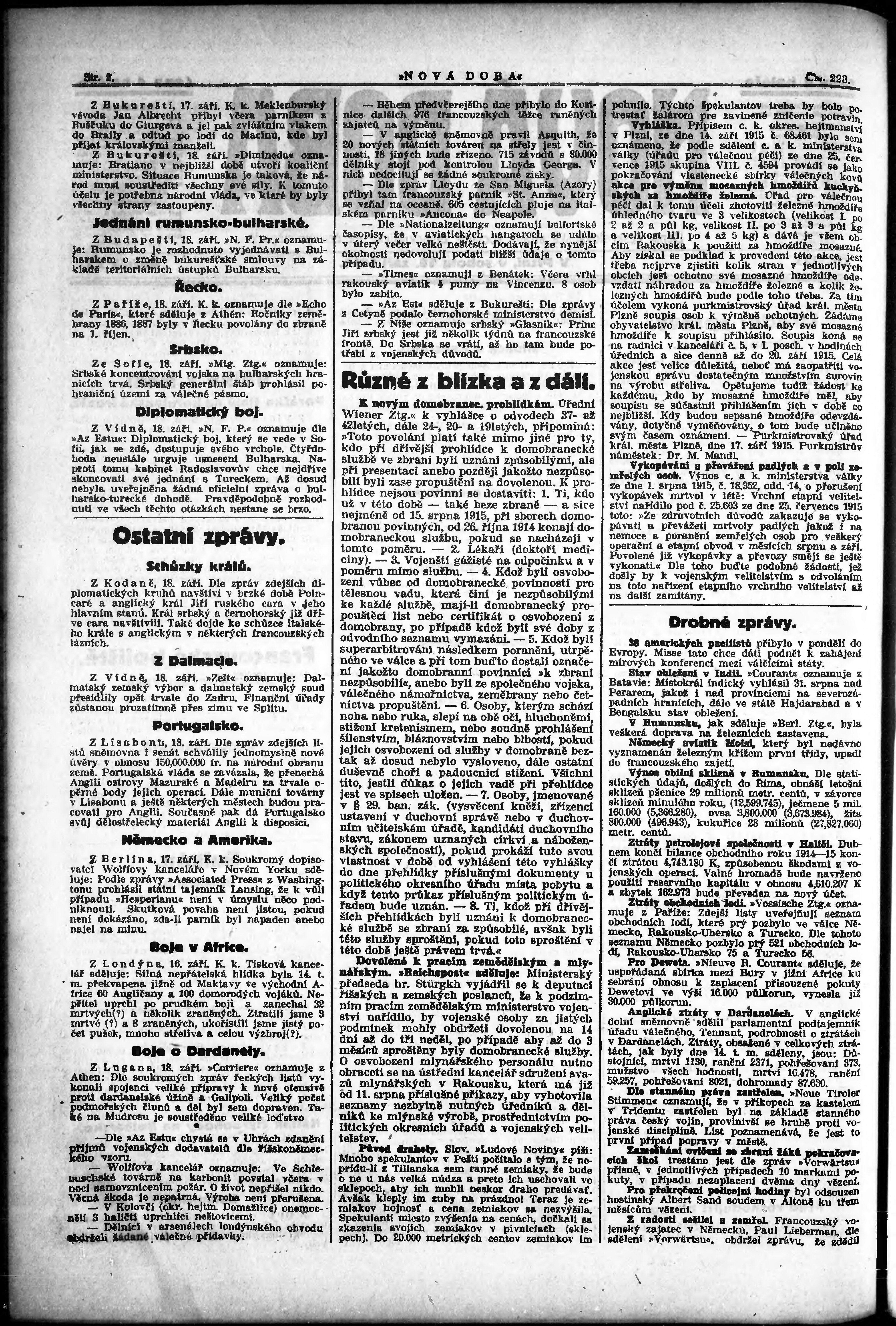 * Datum vydání výtisku: 18.9.1915 Číslo výtisku: 223