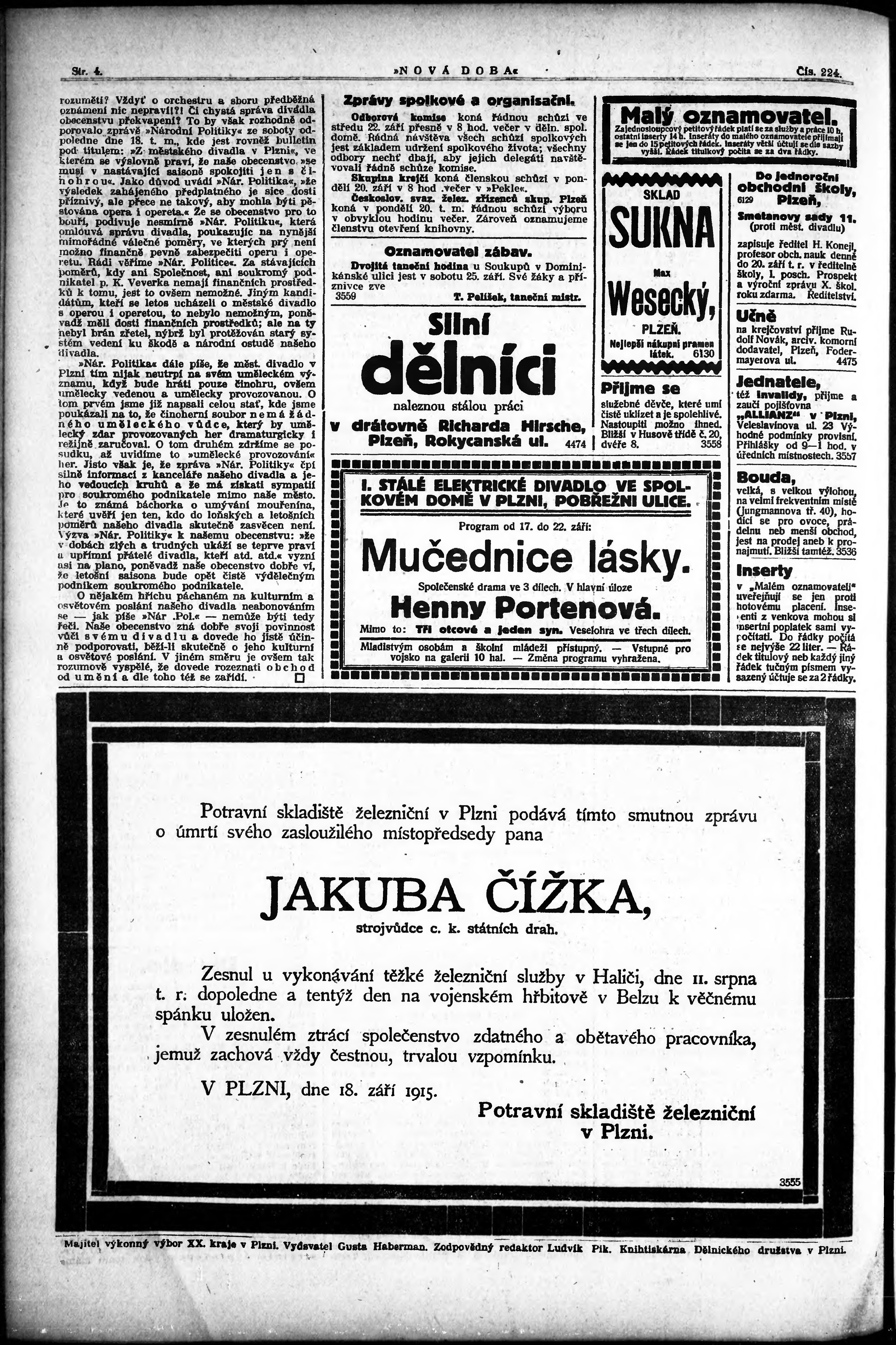 * Datum vydání výtisku: 20.9.1915 Číslo výtisku: 224