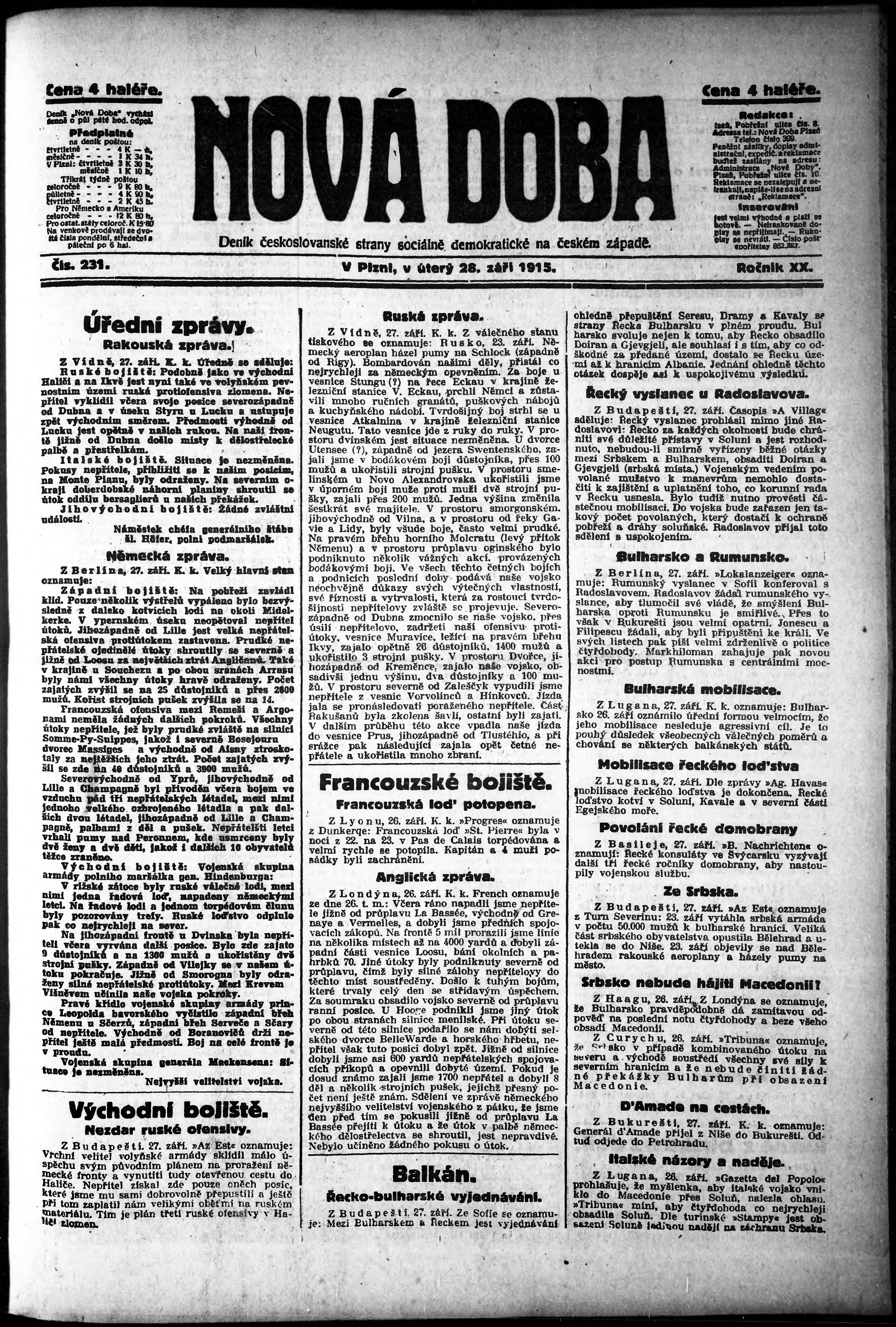 * Datum vydání výtisku: 28.9.1915 Číslo výtisku: 231
