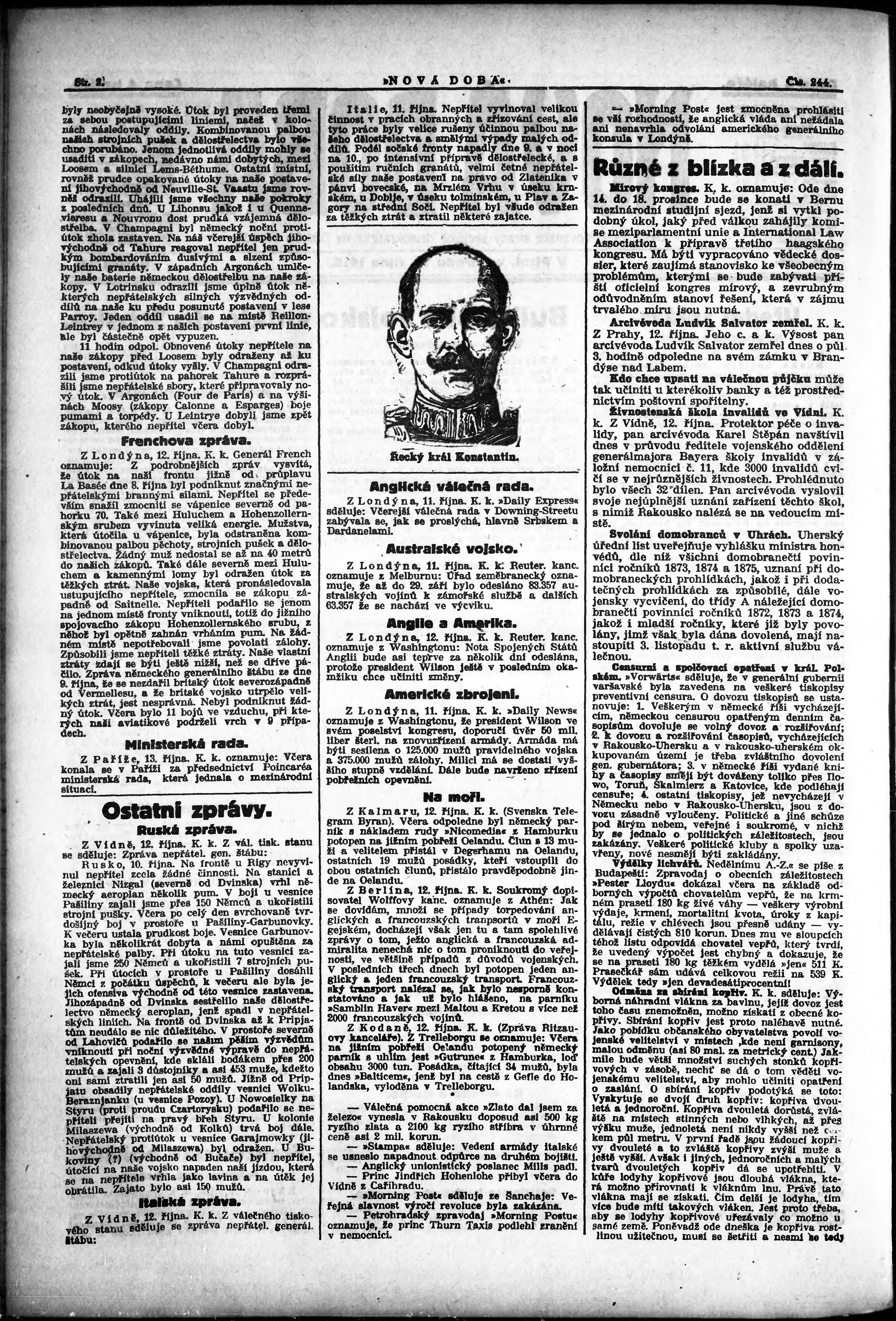 * Datum vydání výtisku: 13.10.1915 Číslo výtisku: 244