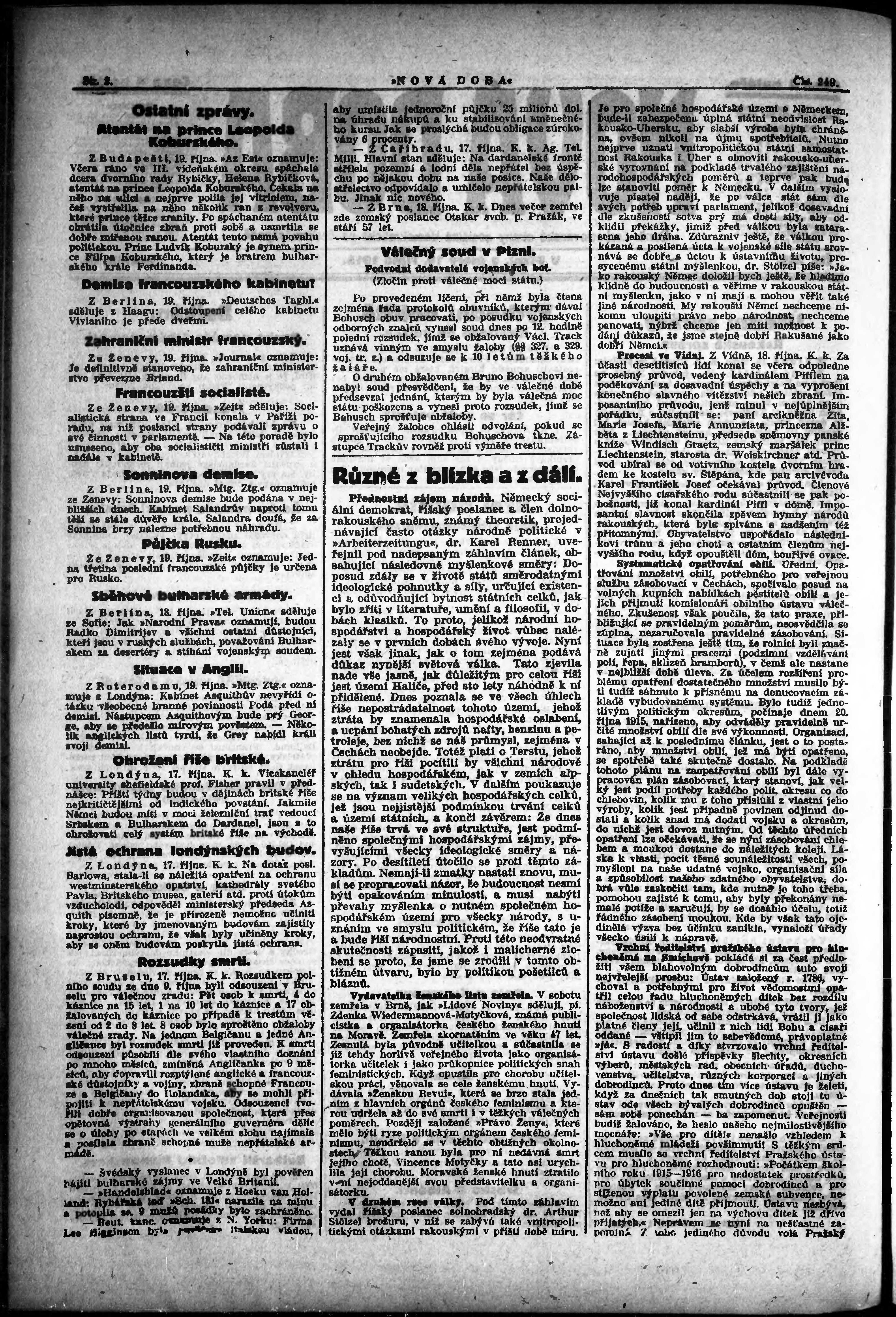 * Datum vydání výtisku: 19.10.1915 Číslo výtisku: 249