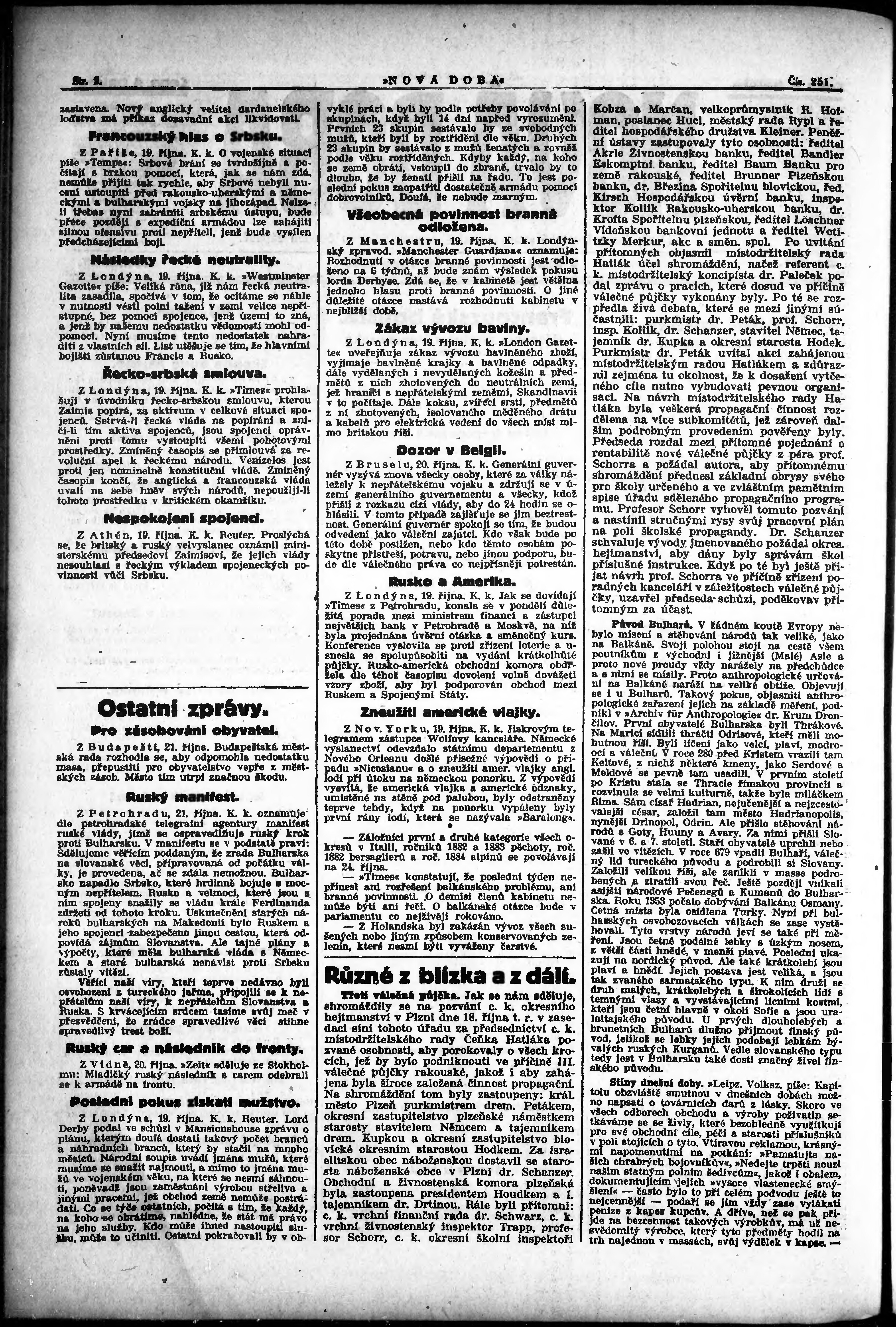 * Datum vydání výtisku: 21.10.1915 Číslo výtisku: 251