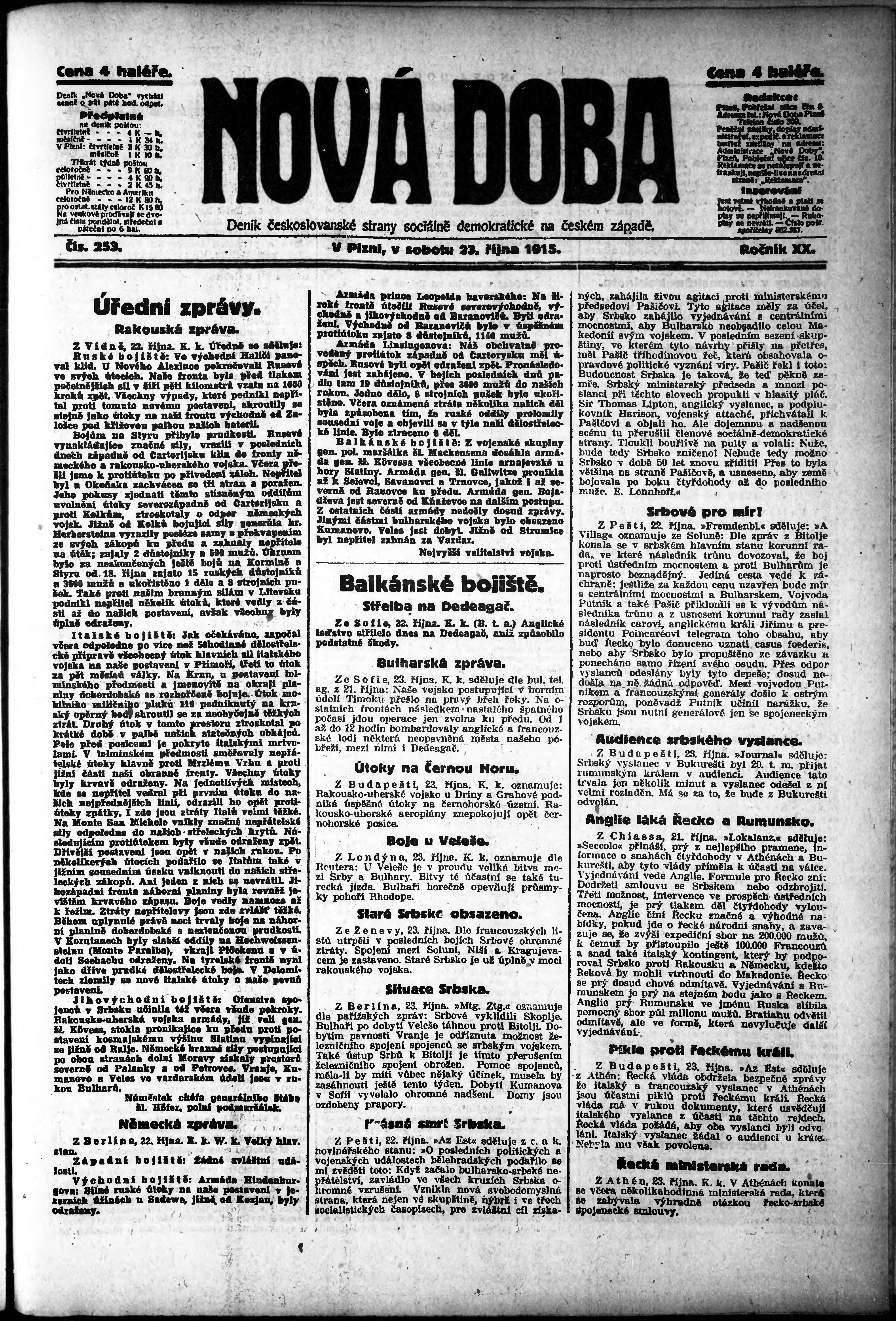 * Datum vydání výtisku: 23.10.1915 Číslo výtisku: 253