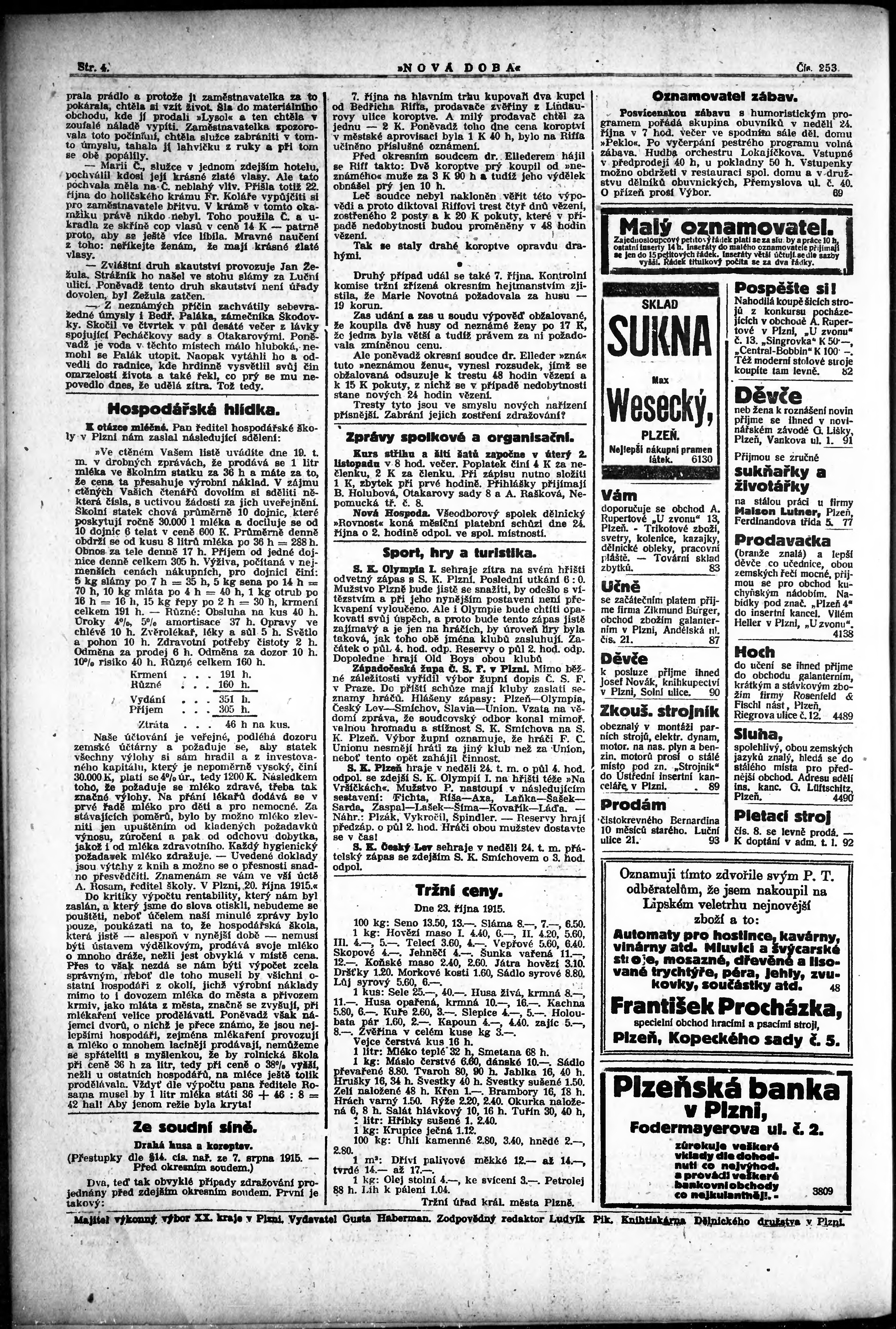 * Datum vydání výtisku: 23.10.1915 Číslo výtisku: 253