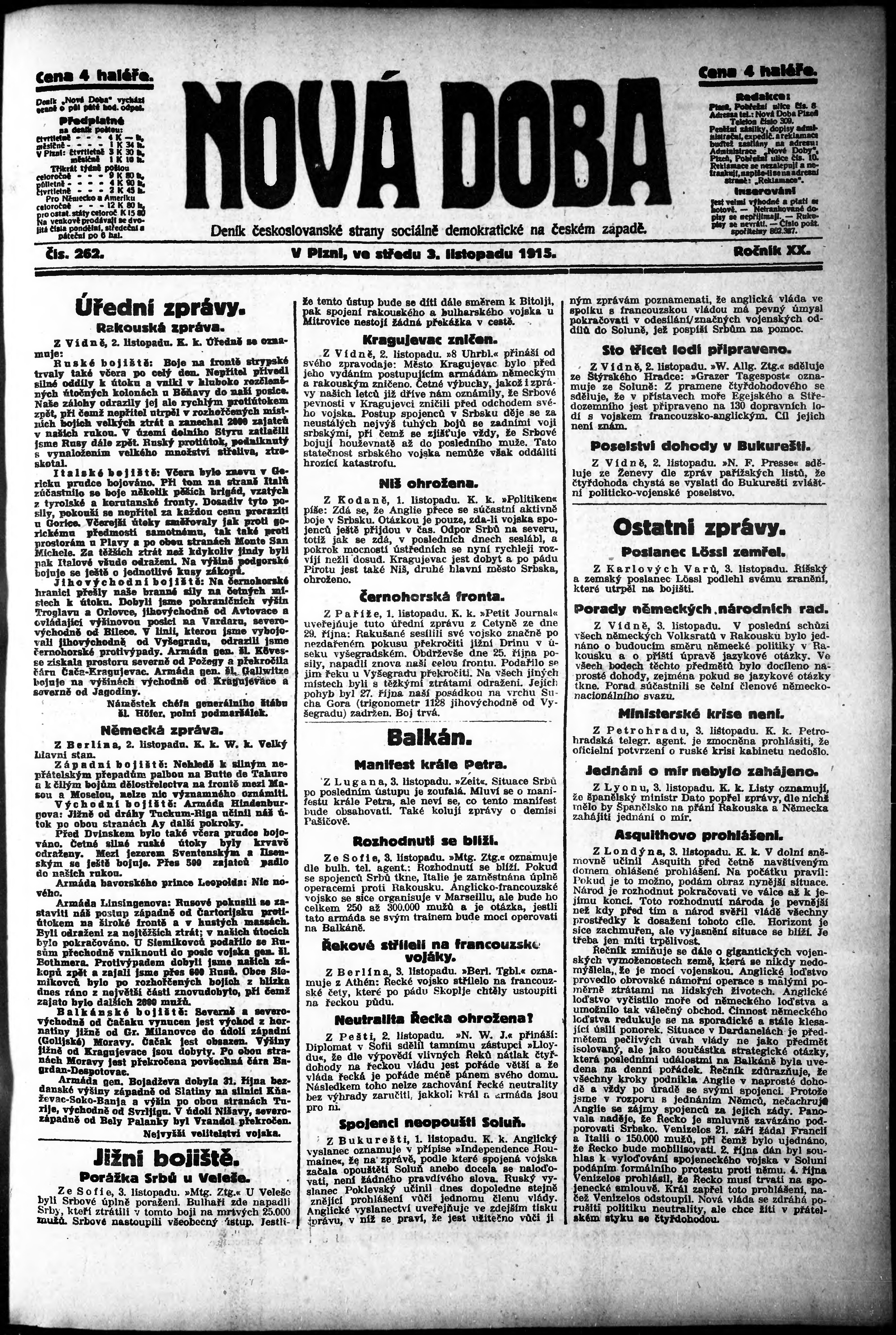 * Datum vydání výtisku: 3.11.1915 Číslo výtisku: 262