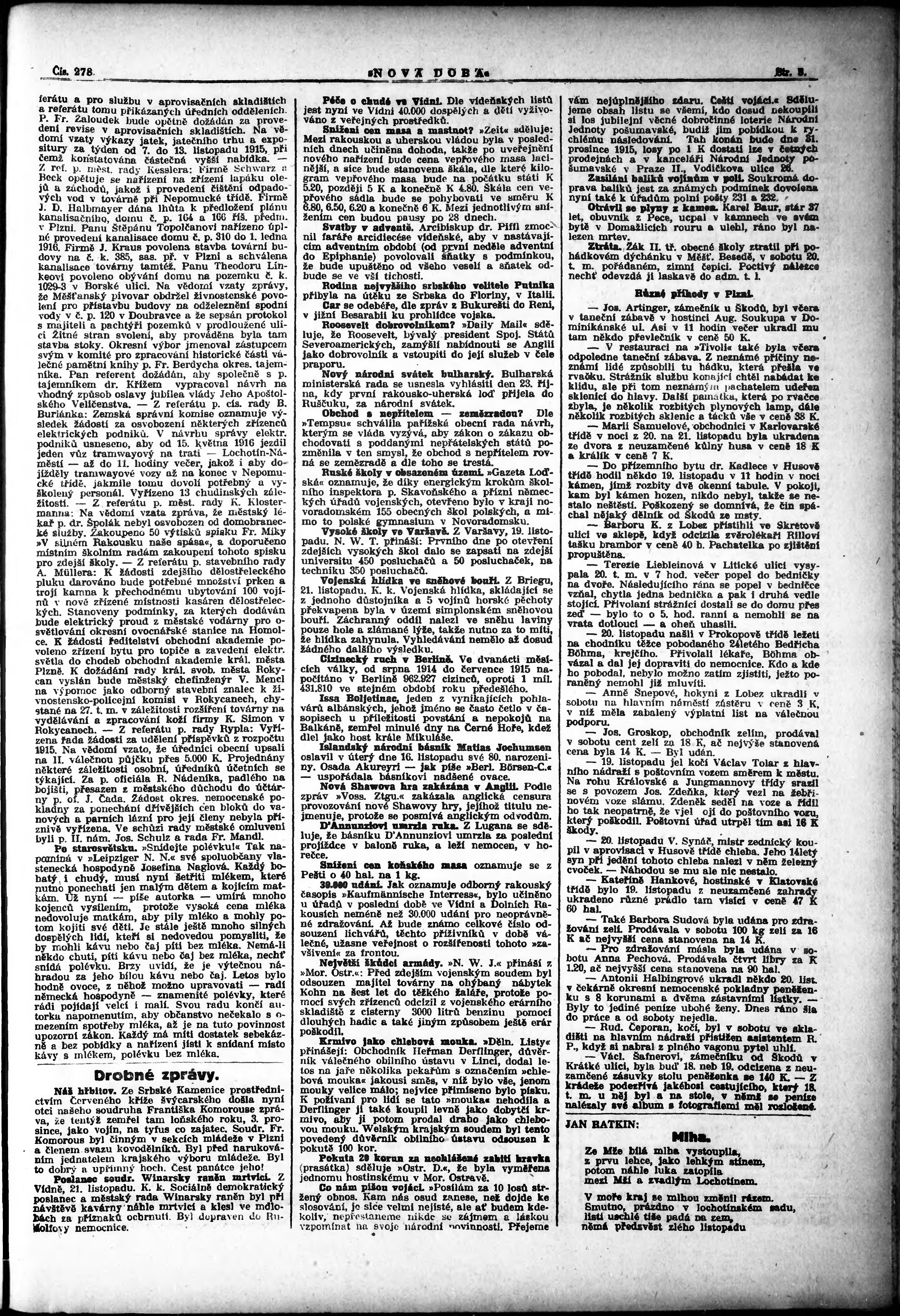 * Datum vydání výtisku: 22.11.1915 Číslo výtisku: 278