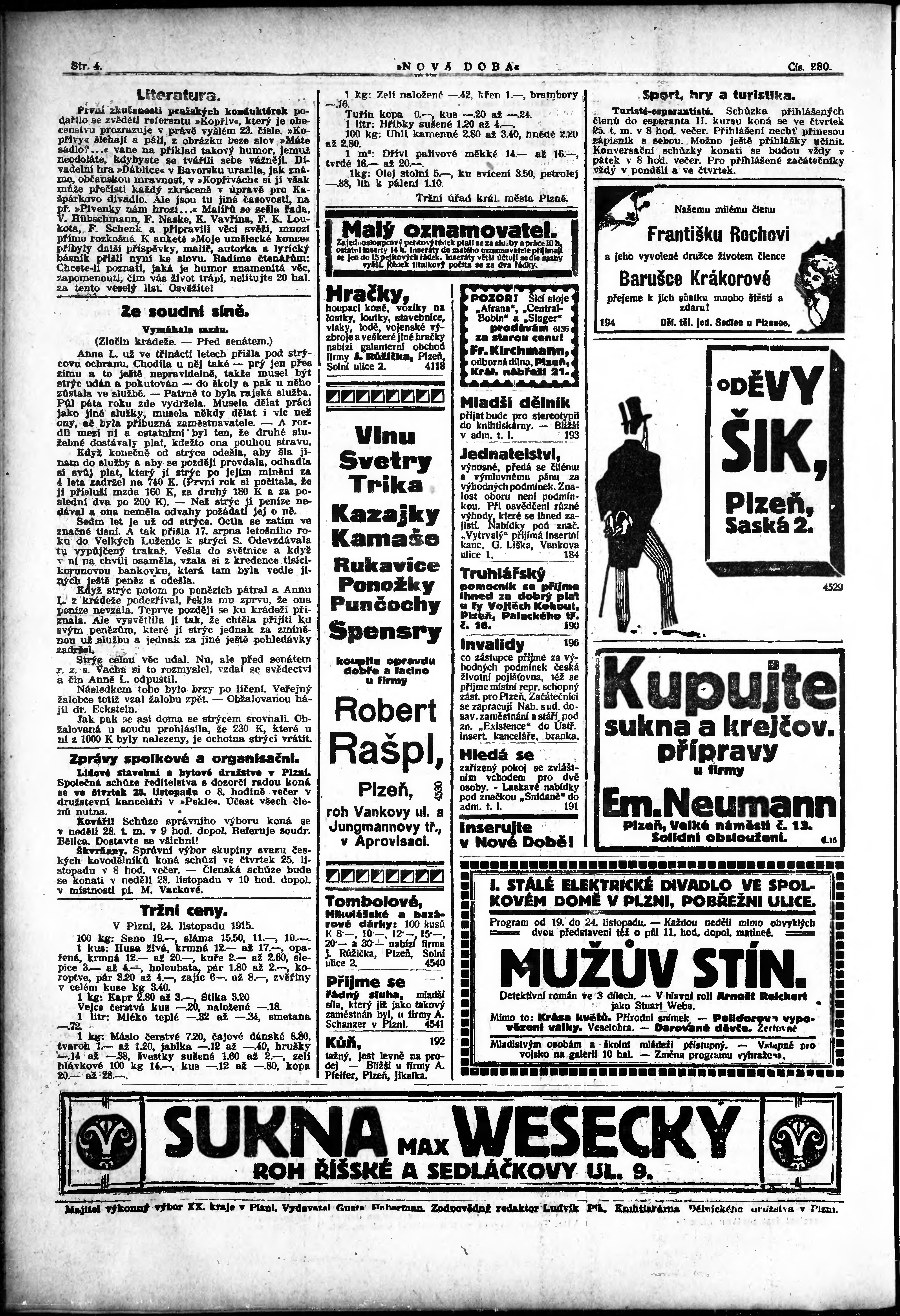 * Datum vydání výtisku: 24.11.1915 Číslo výtisku: 280