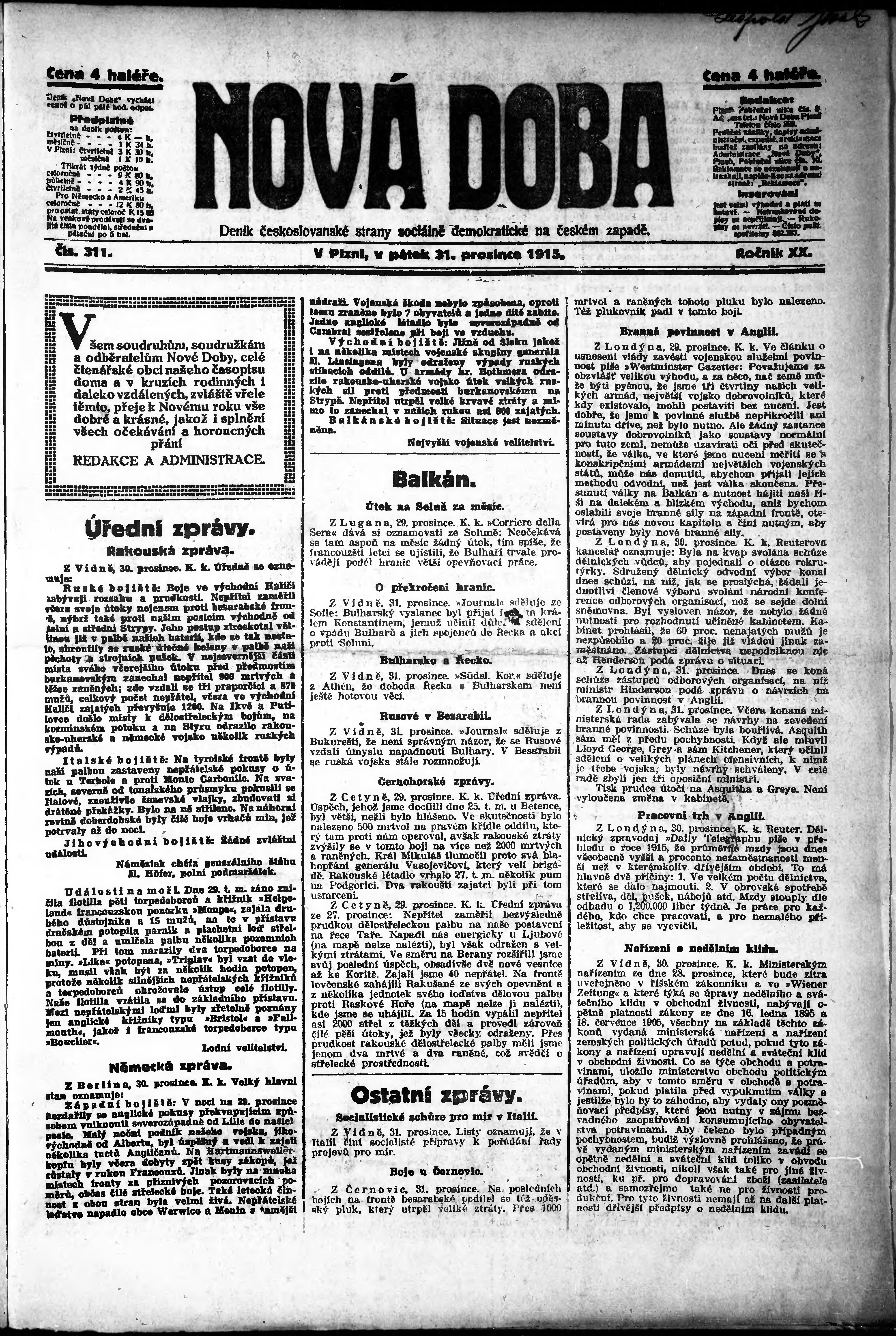 * Datum vydání výtisku: 31.12.1915 Číslo výtisku: 311