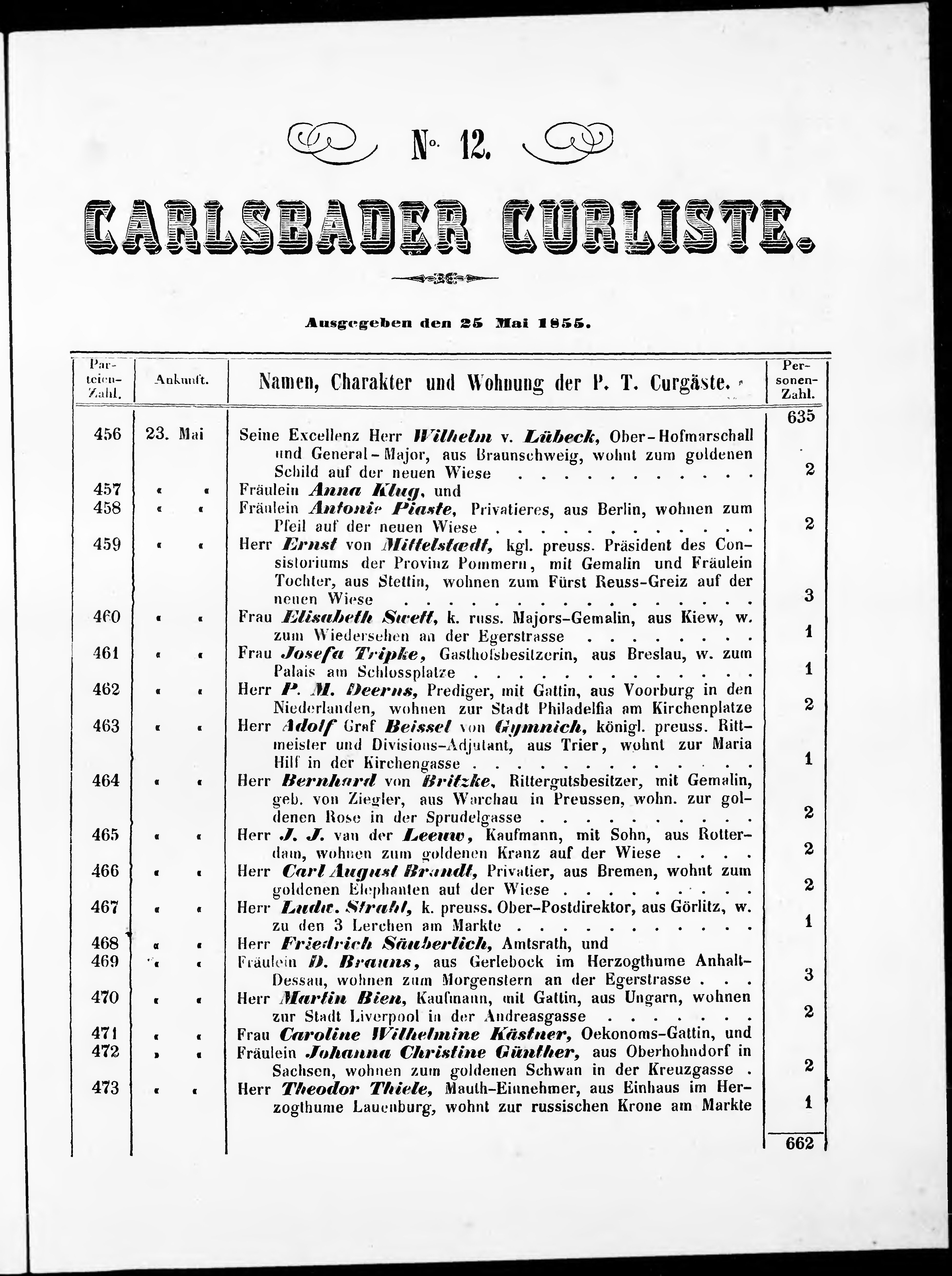* Datum vydání výtisku: 25.5.1855 Číslo výtisku: 12