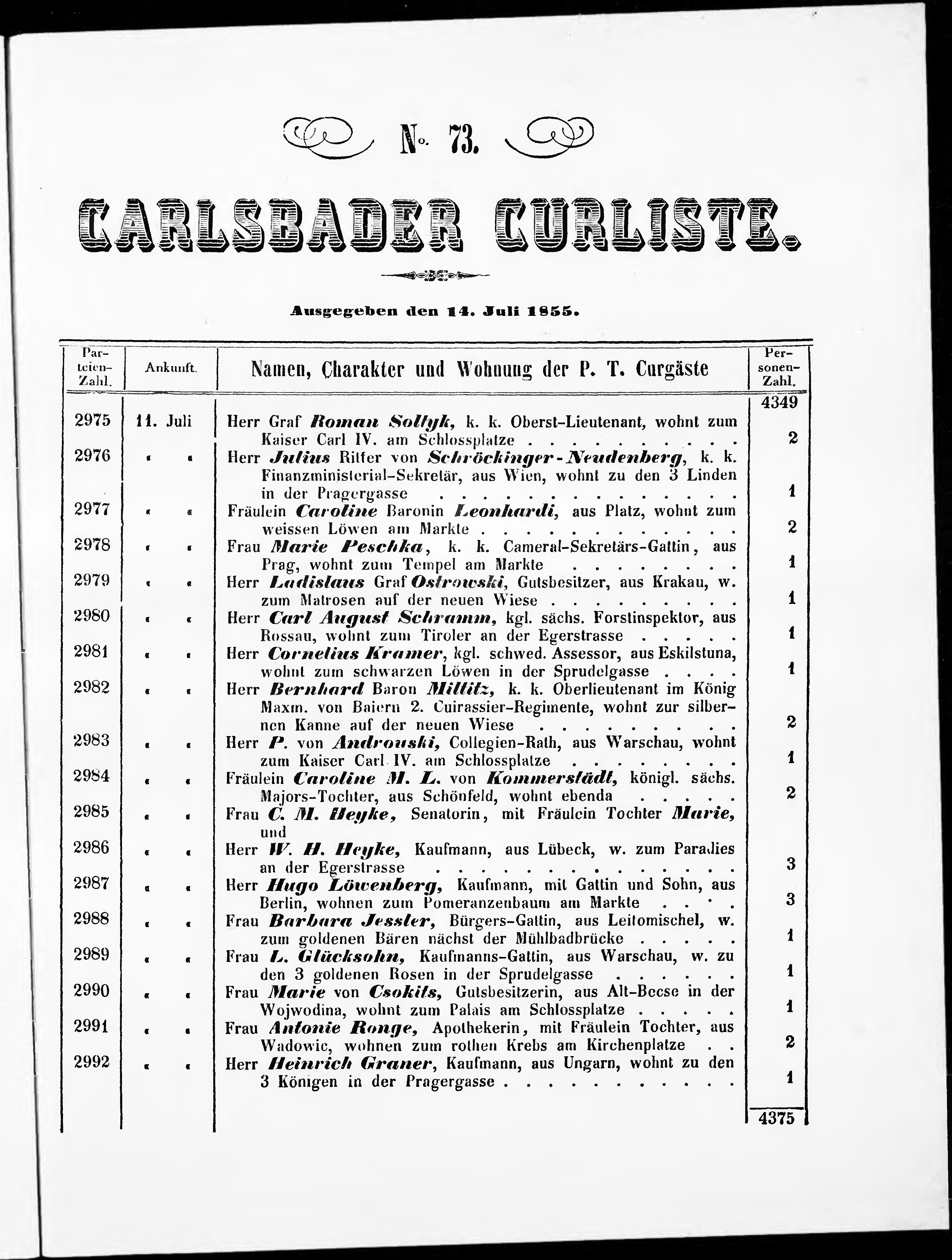 Liste der im Jahre ... angekommenen und abgereisten Kur- und Badegäste in Karlsb...