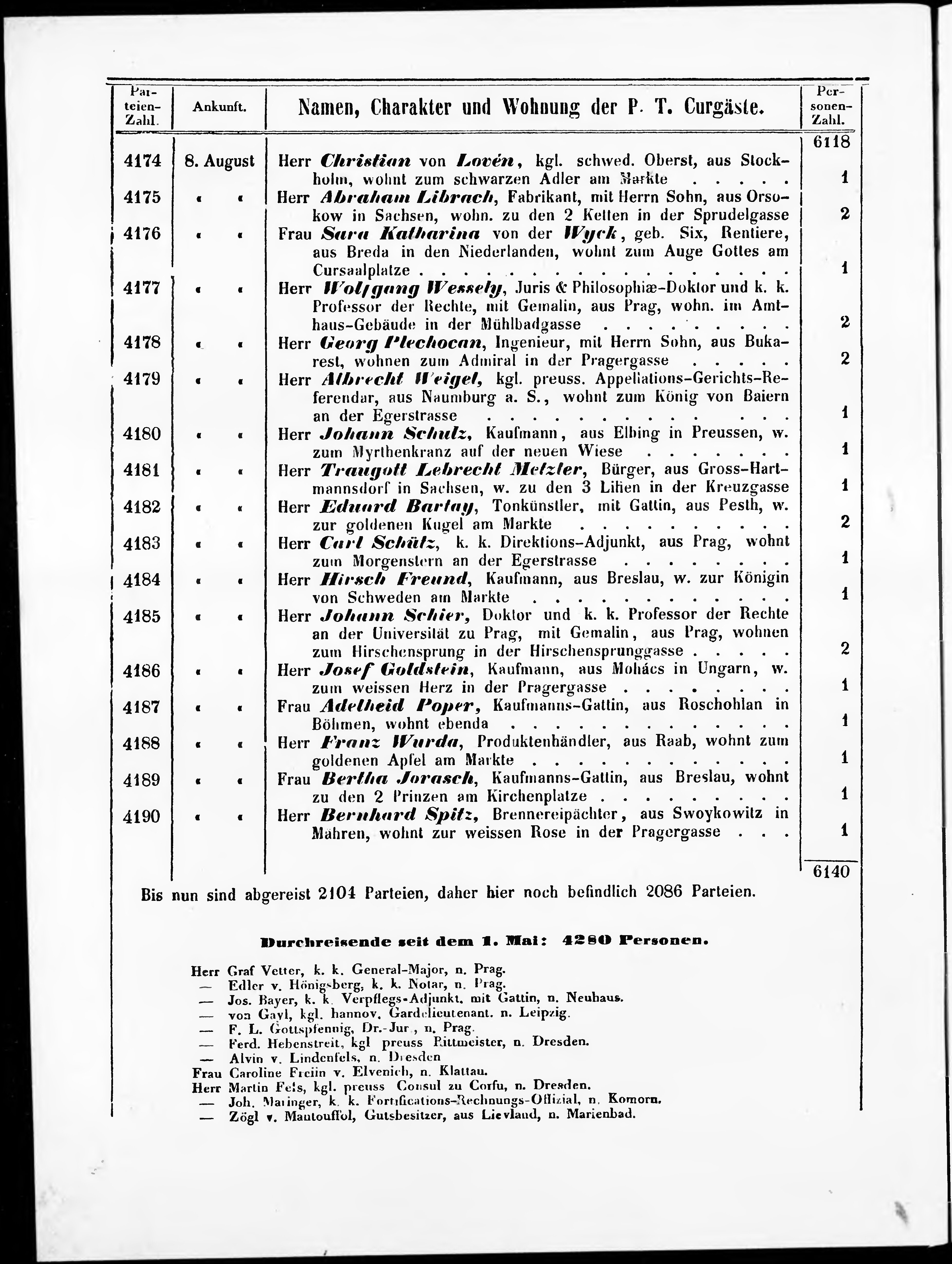 Liste der im Jahre ... angekommenen und abgereisten Kur- und Badegäste in Karlsb...
