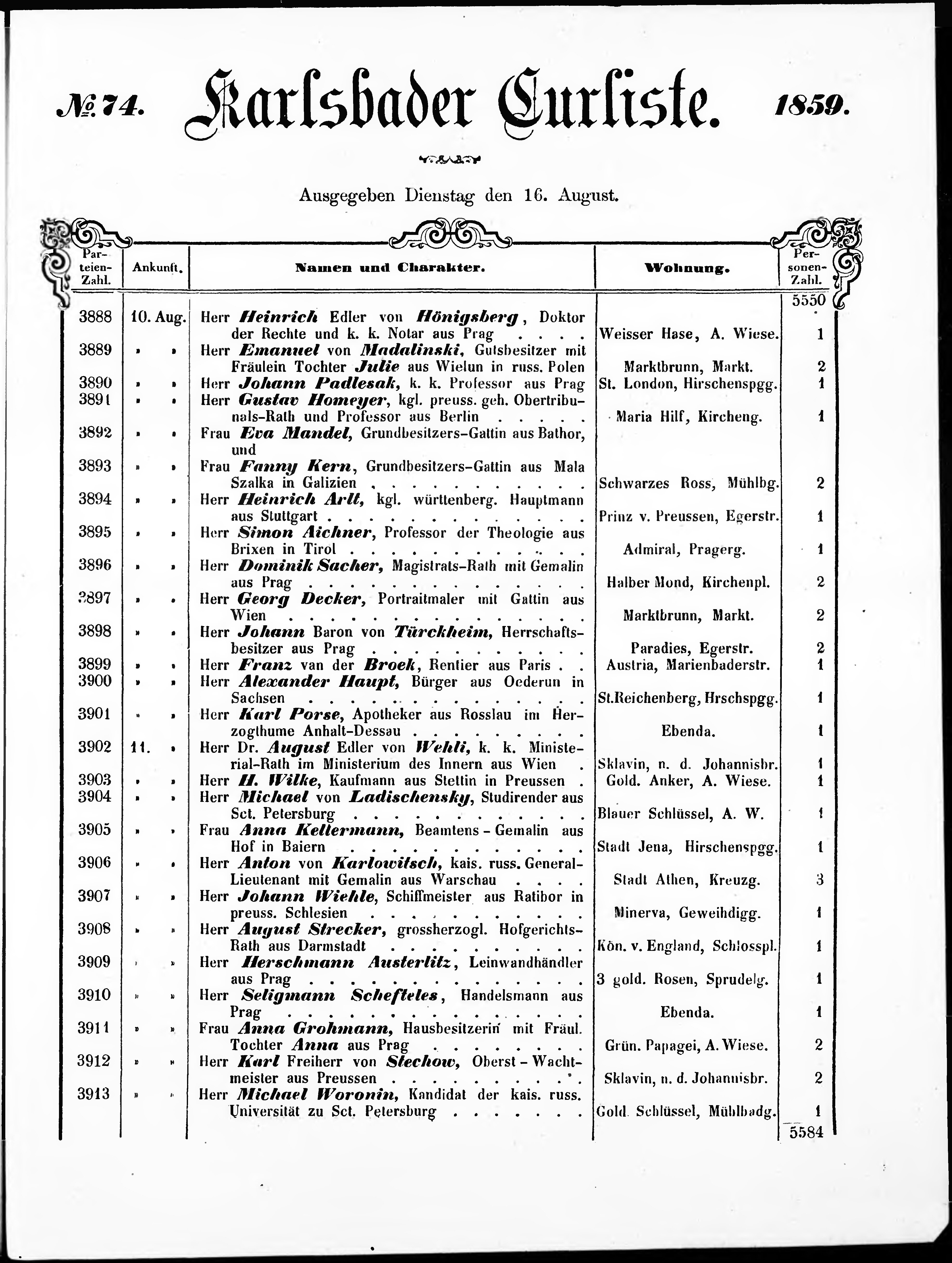 Liste der im Jahre ... angekommenen und abgereisten Kur- und Badegäste in Karlsb...