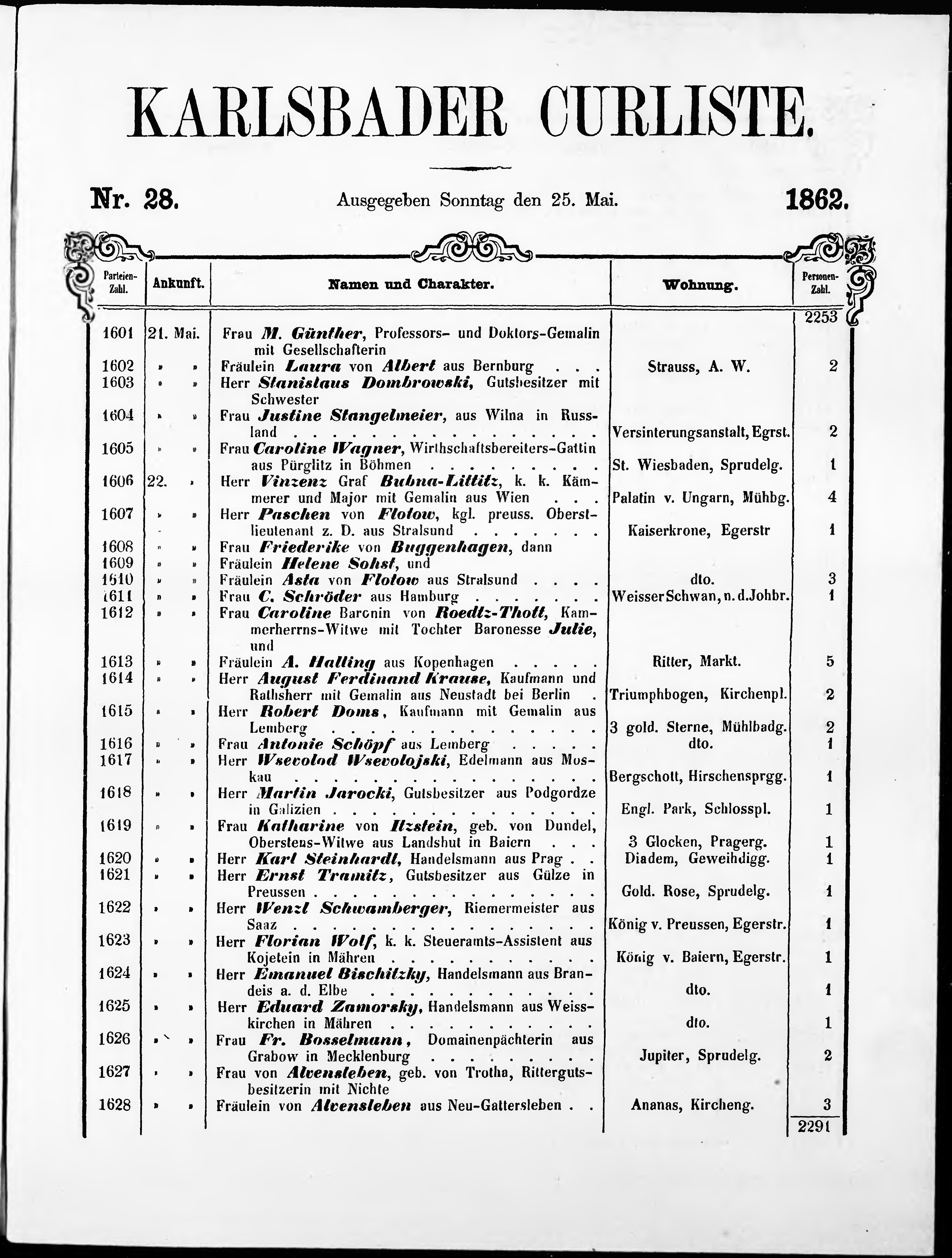 Liste der P.T. Curgäste in Carlsbad ...