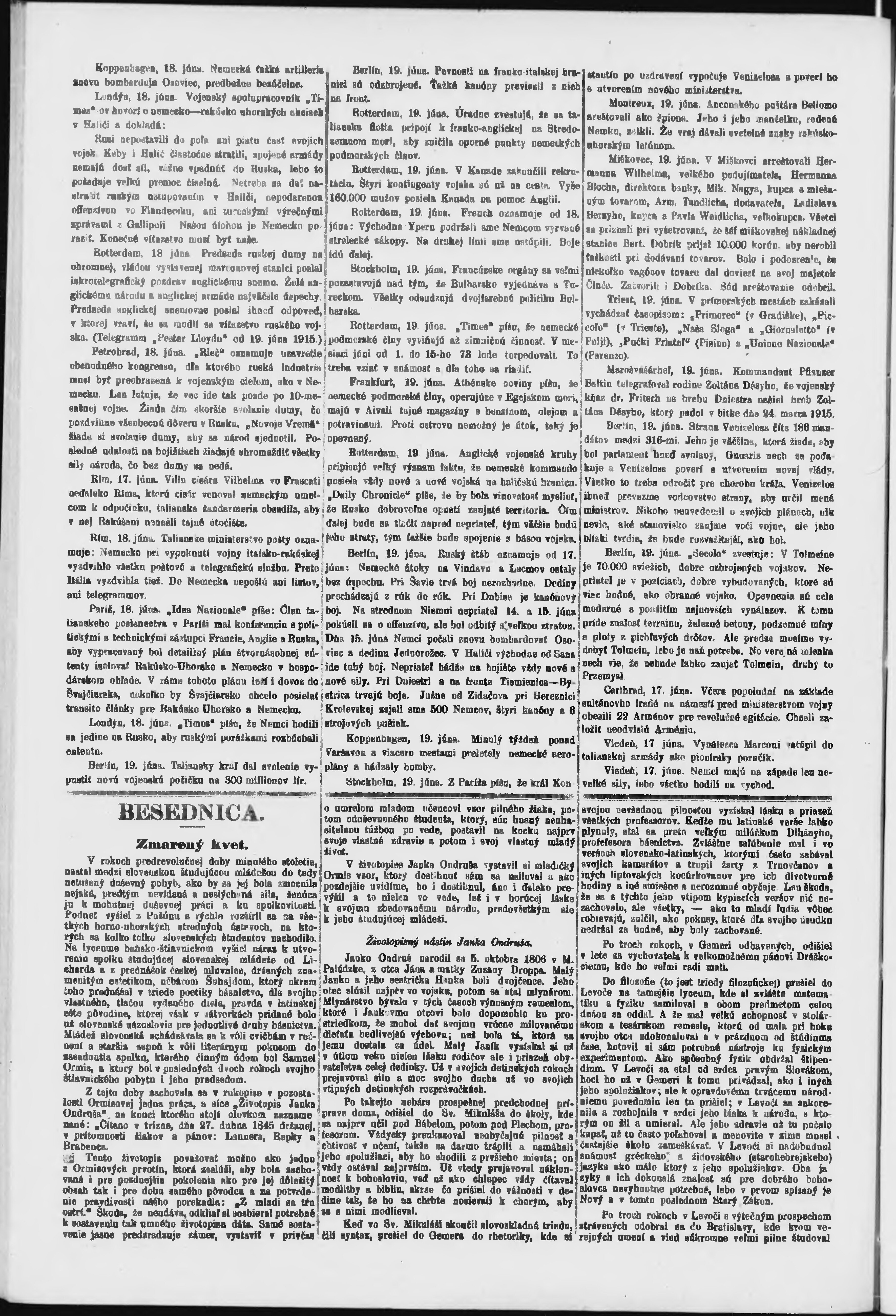 * Datum vydání výtisku: 22.6.1915 Číslo výtisku: 73