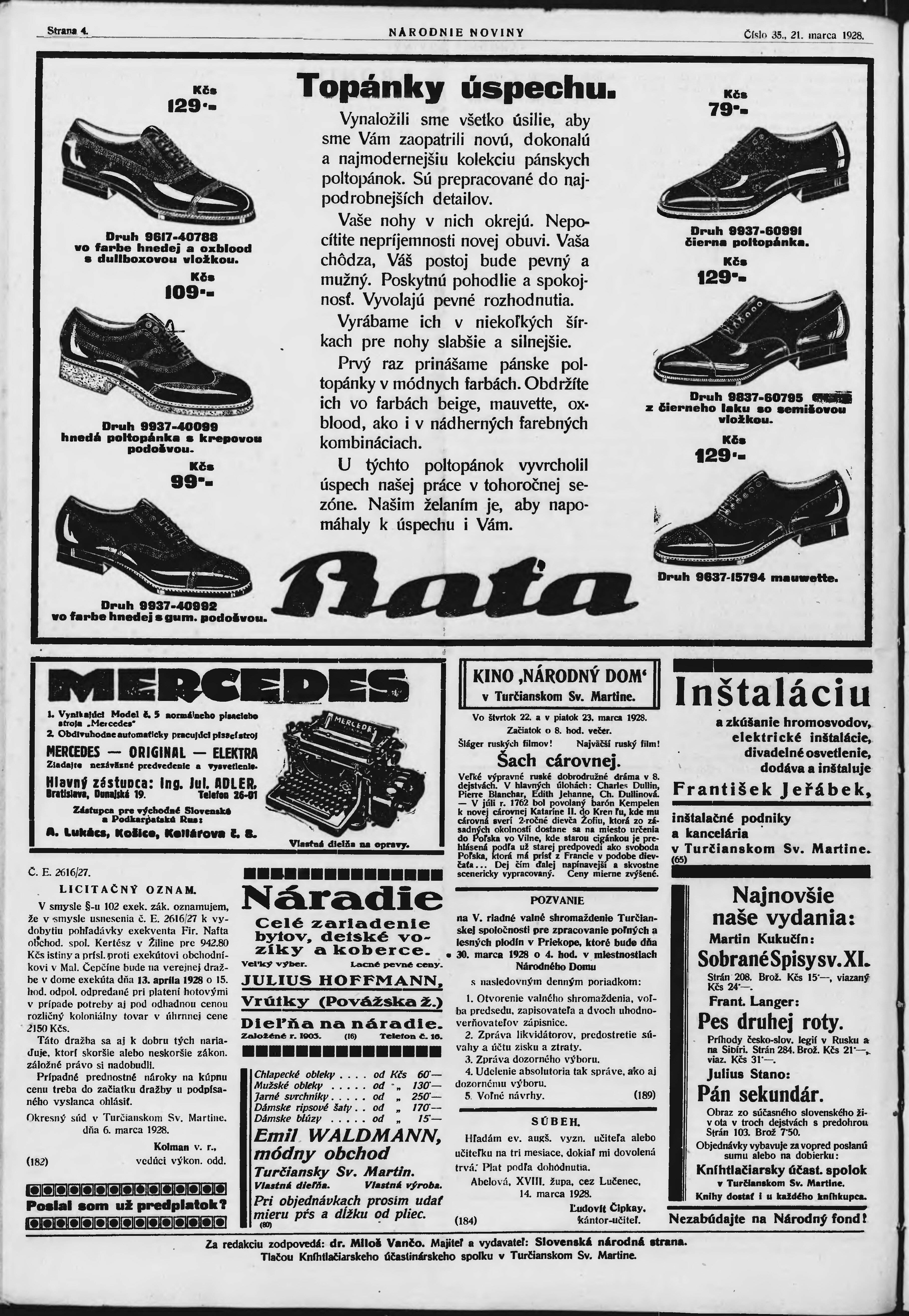 * Datum vydání výtisku: 21.3.1928 Číslo výtisku: 35