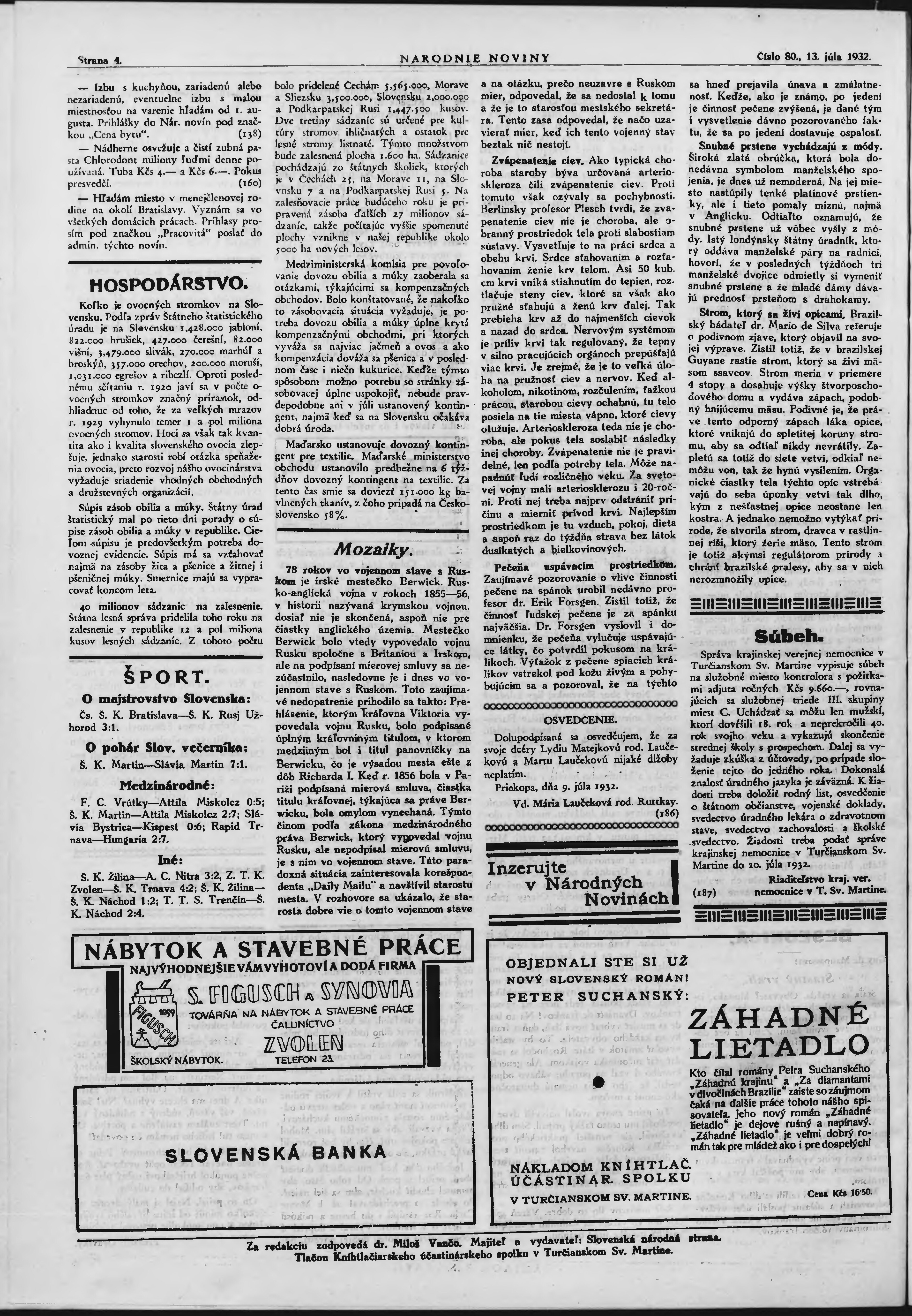 * Datum vydání výtisku: 13.7.1932 Číslo výtisku: 80