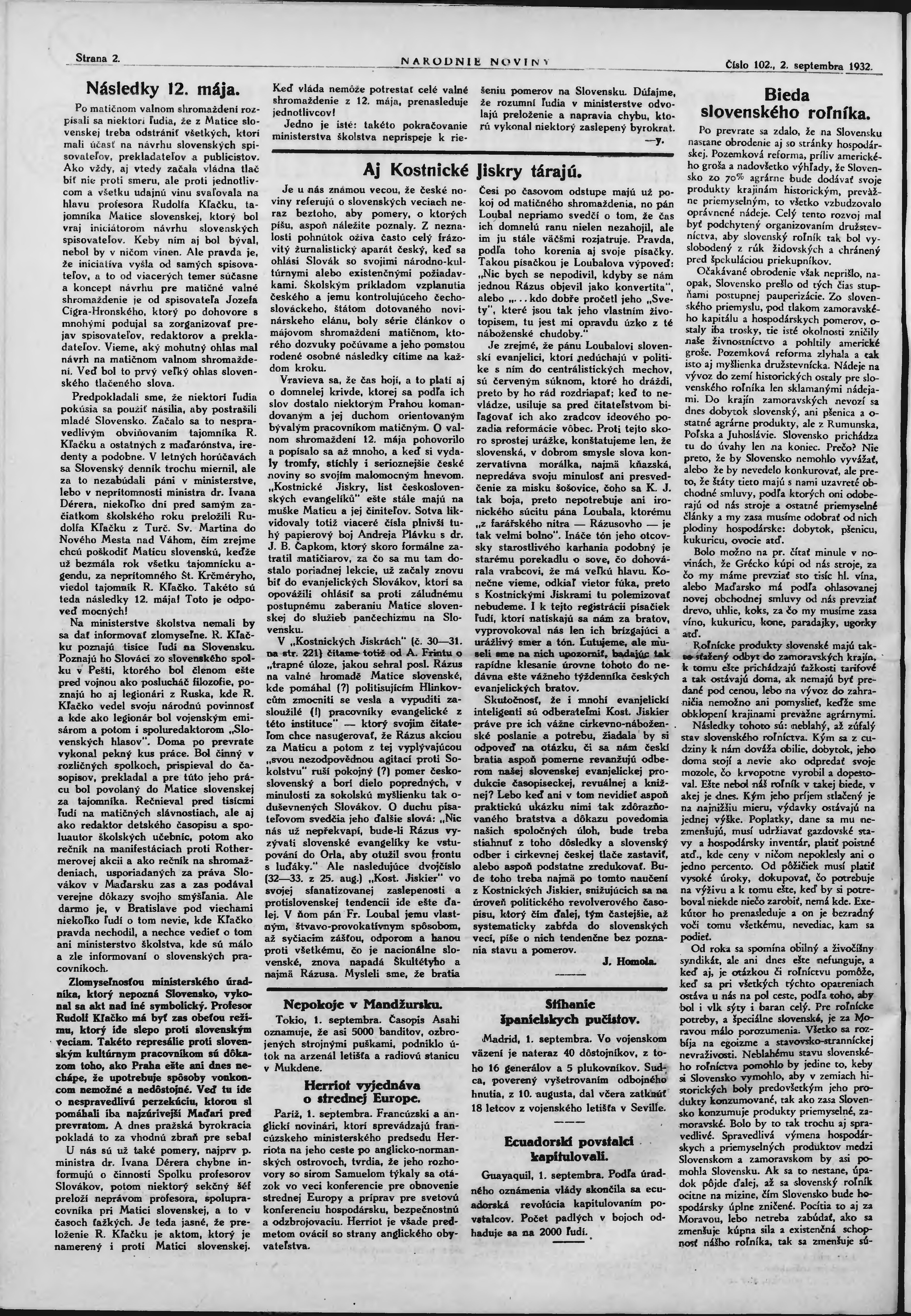 * Datum vydání výtisku: 2.9.1932 Číslo výtisku: 102